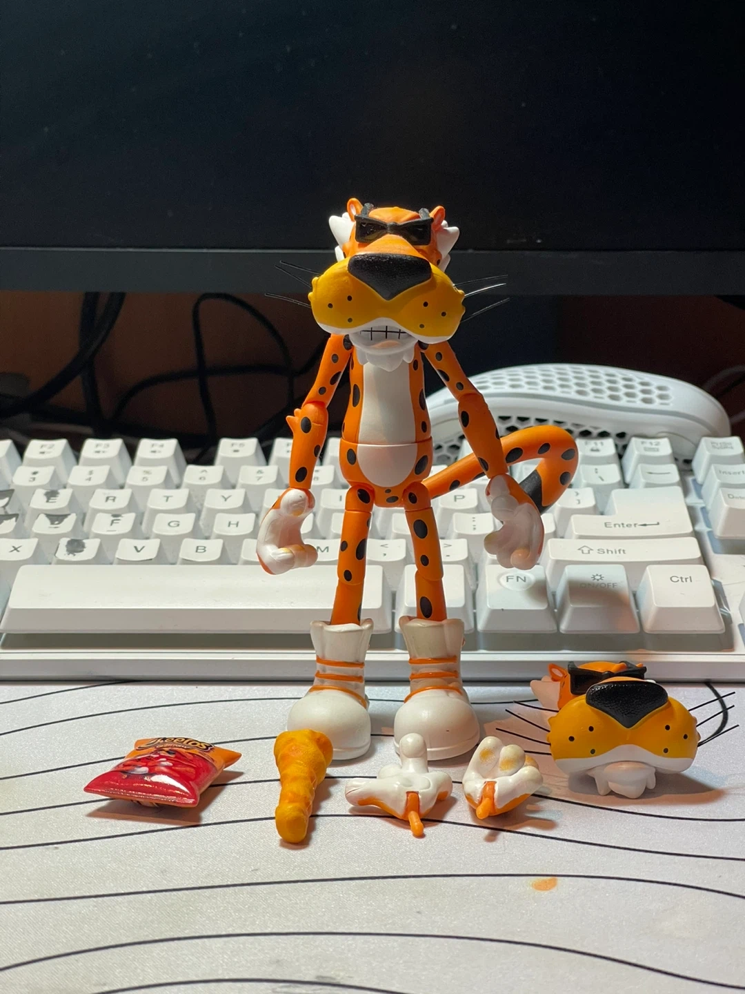 Selling a Chester Cheetah action figure! It comes with some accessories like a Cheetos bag and a Cheeto puff. Great for any Cheetos fan!