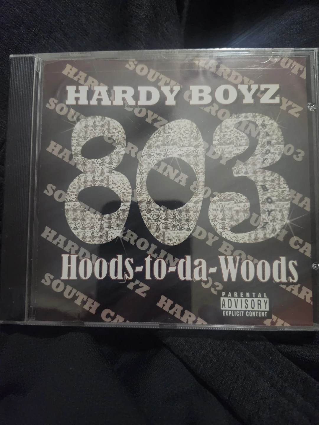 This CD is by Hardy Boyz and is titled 803 Hoods-to-da-Woods. It contains explicit content, as indicated by the parental advisory sticker. The album artwork features the number 803 prominently.