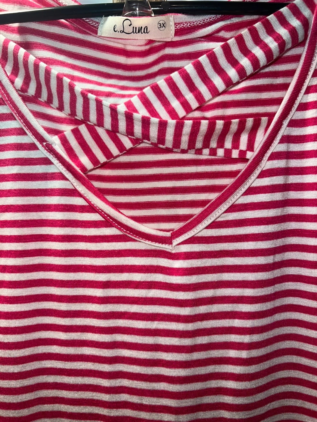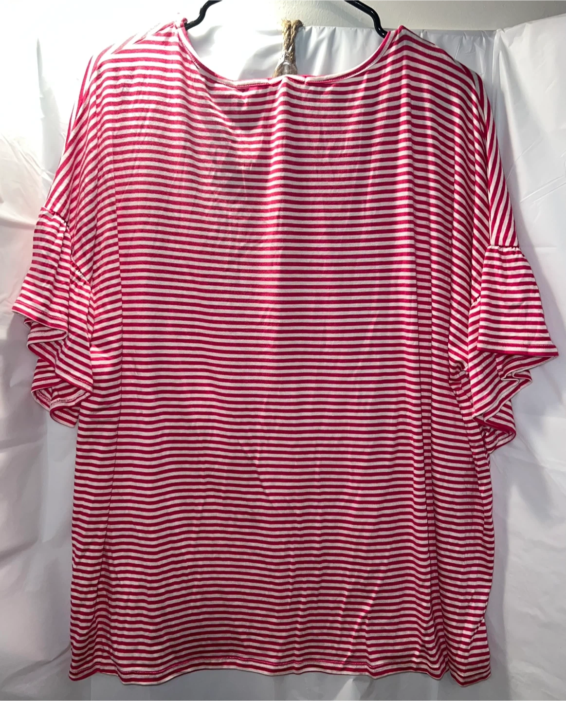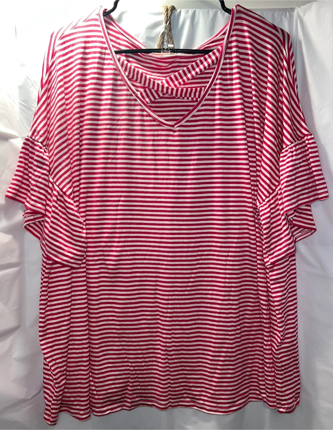 Selling a c.Luna top in size 3X! It features a red and white striped pattern and a V-neck design. The sleeves have a layered, ruffled detail, adding a touch of flair to this comfortable and stylish top NEW NEVER WORN VERY STRETCHY