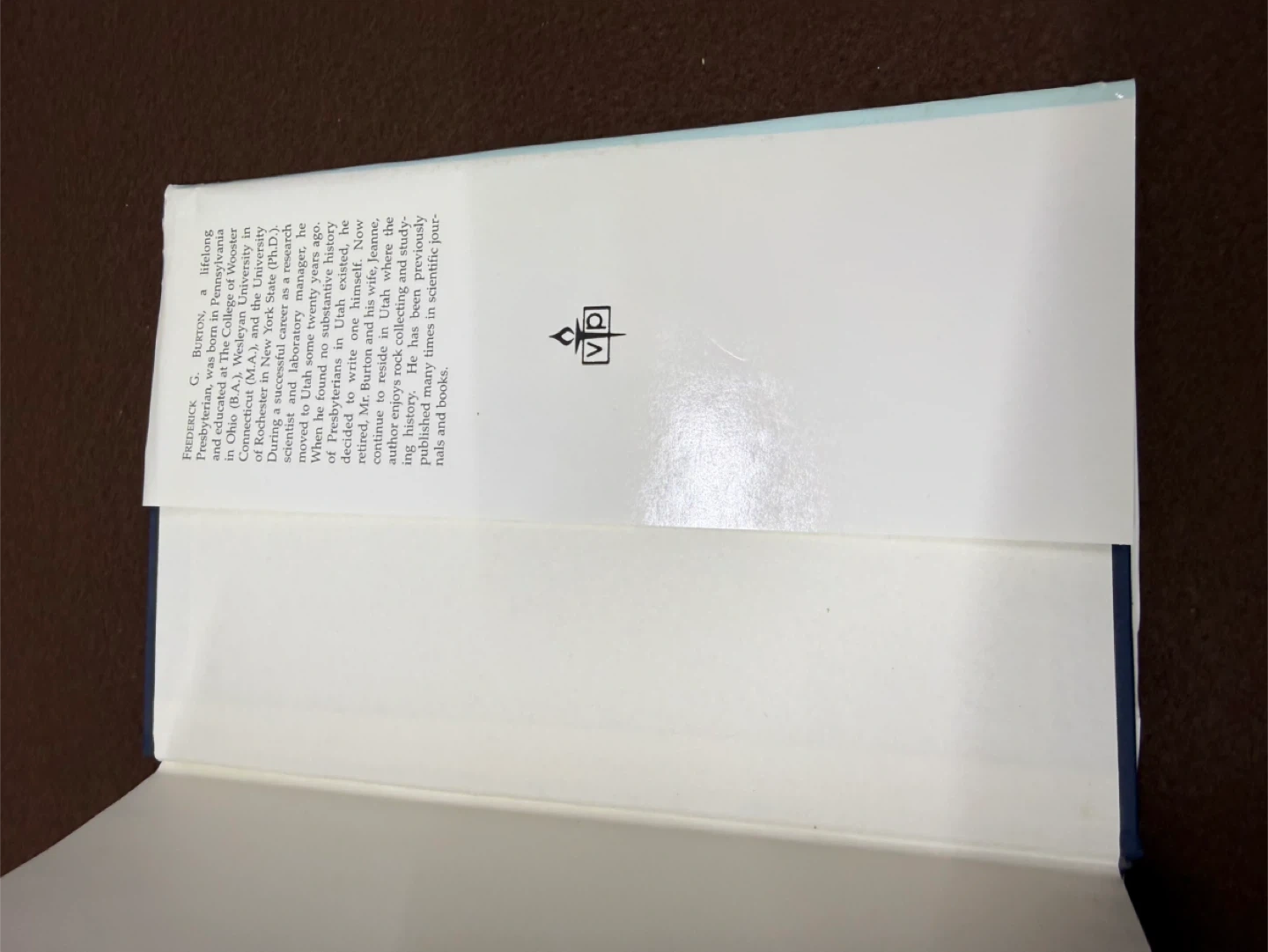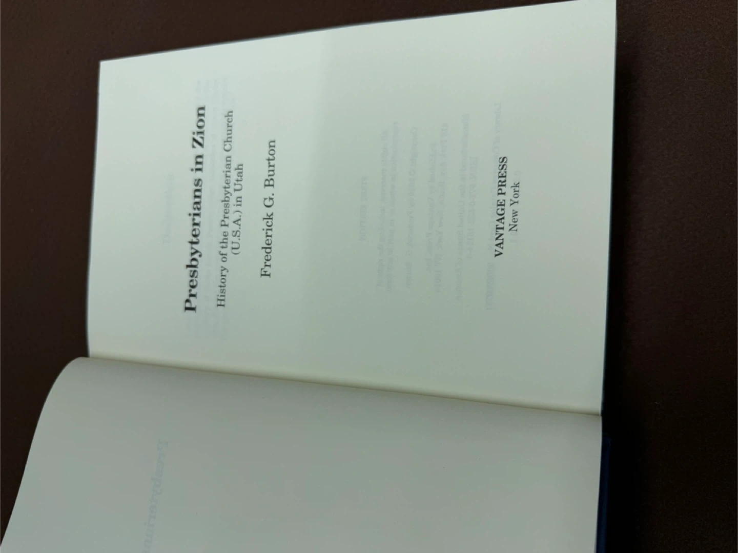 A book detailing the history of the Presbyterian Church (U.S.A.) in Utah. Authored by Frederick G. Burton and published by Vantage Press. This is a historical account of the church's presence and development in the region.