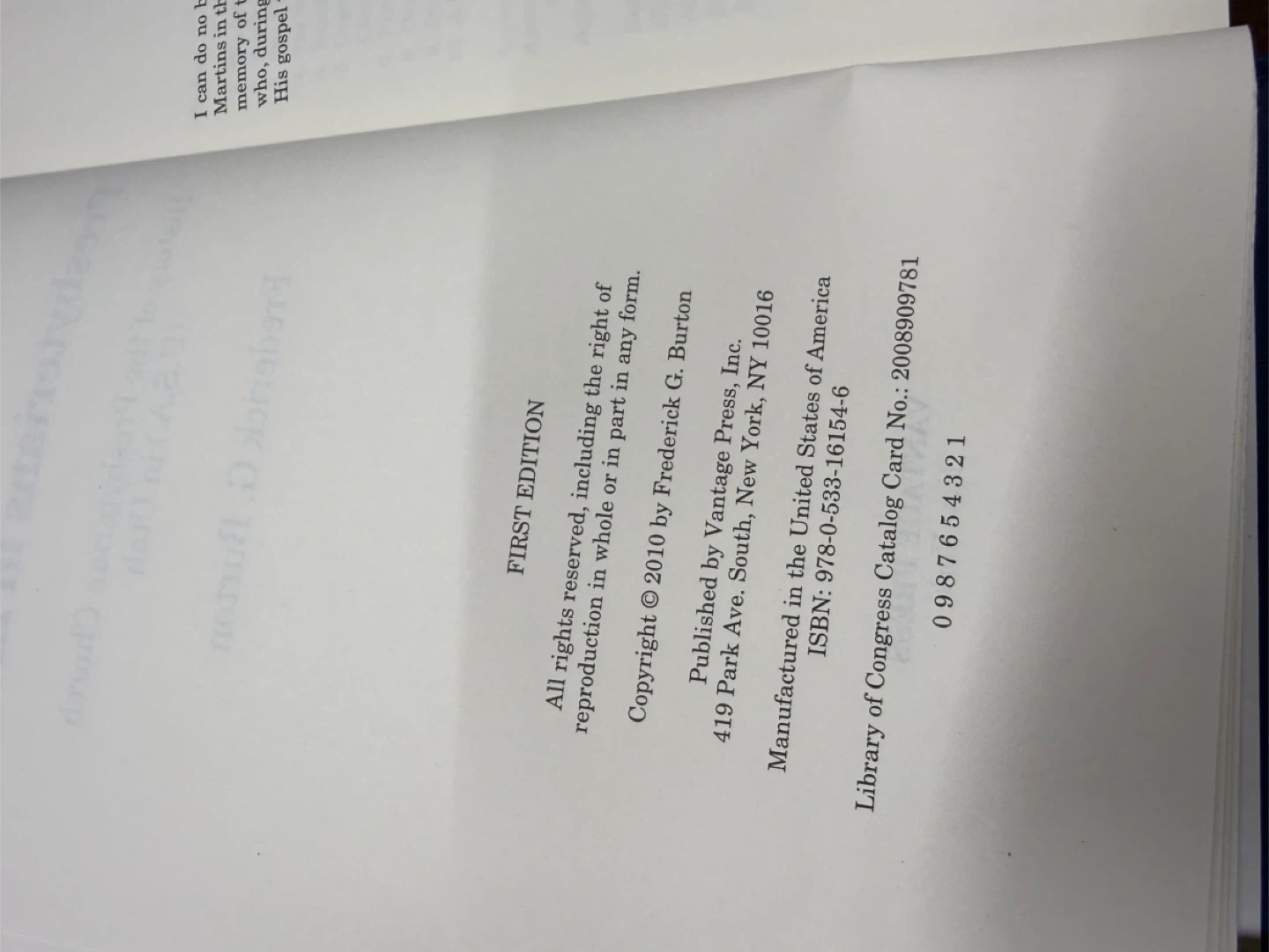 First Edition hardcover published in 2010 by Vantage Press.