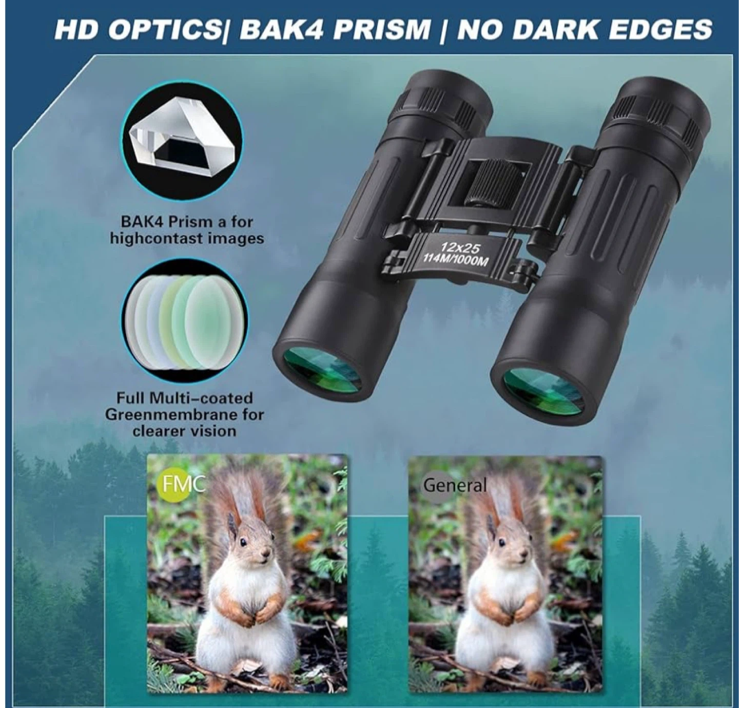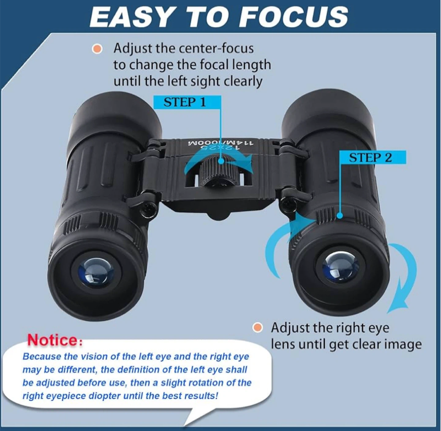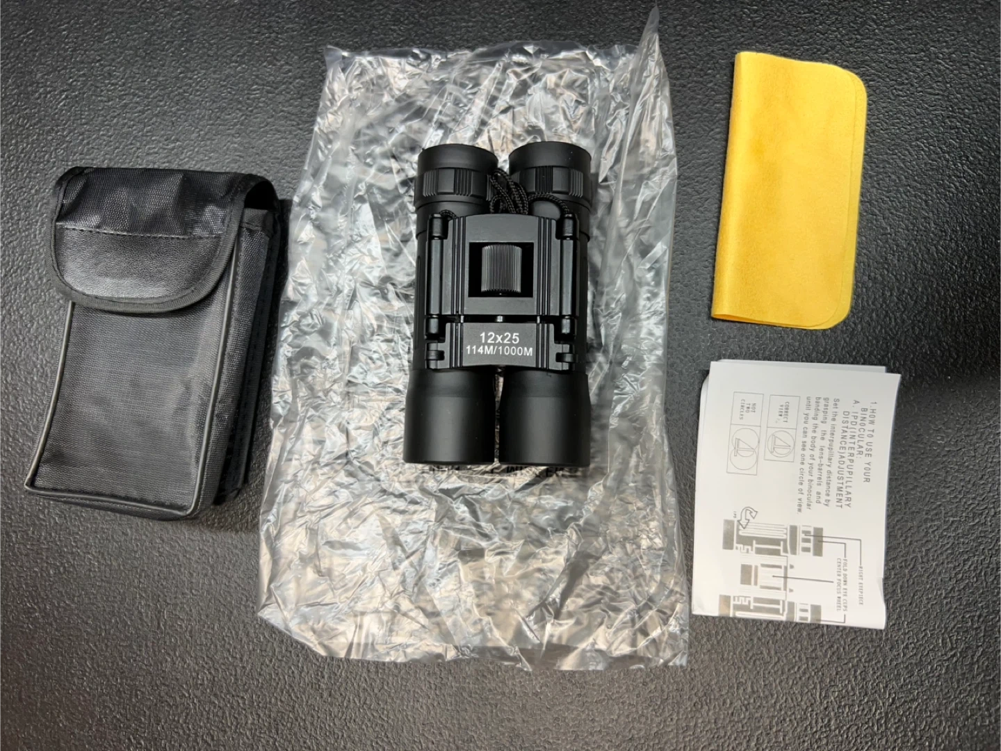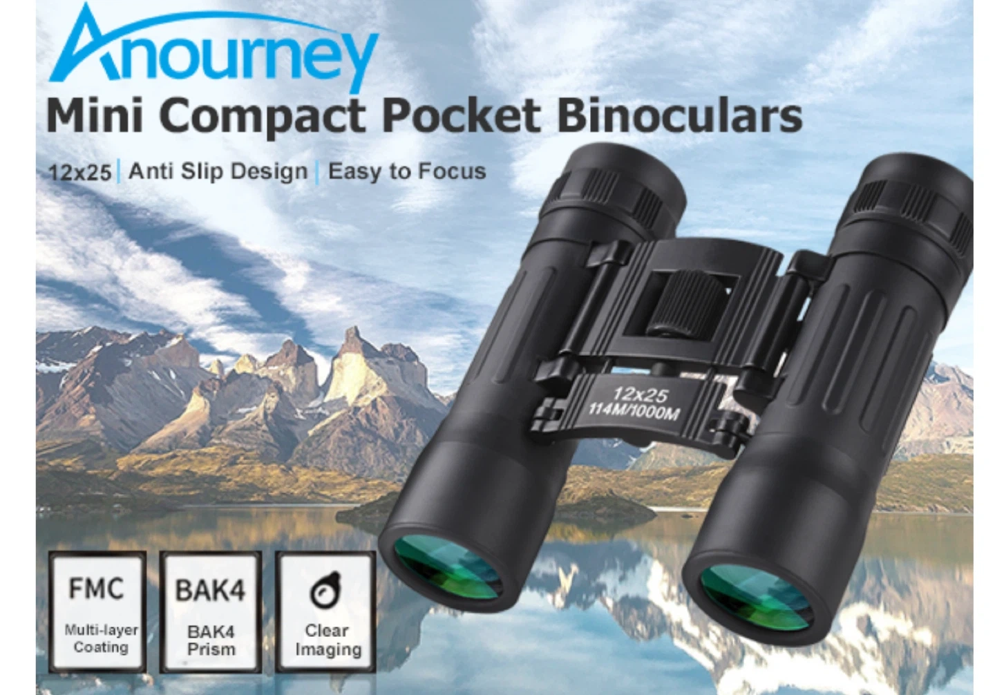 These mini compact binoculars are NEW and ready for your next adventure! They feature 12x magnification and a 25mm eyepiece for a large and bright view.