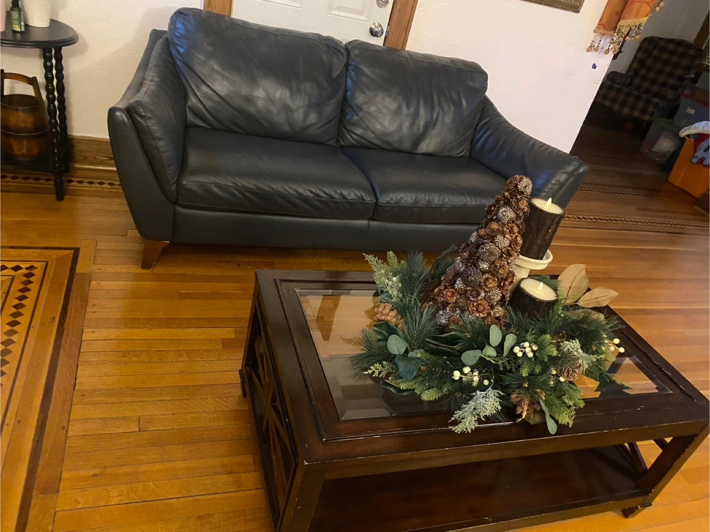 Black Leather 2-Seat Sofa with table