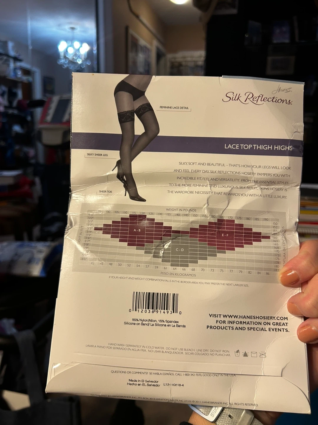 Hanes Silk Reflections Lace Top Thigh Highs are silky soft and beautiful, that's how your legs will look and feel every day. These lace top thigh highs offer incredible feel and versatility from the essential styles to the now. This luxurious silk reflections hosiery is the wardrobe necessity that rewards you with a little luxury. Barely black color