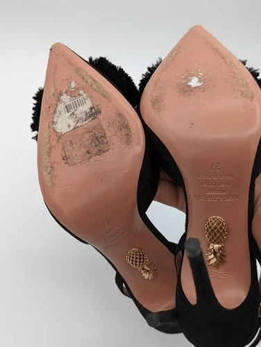 AQUAZZURA Black Powder Puff Suade Sling Back Sandal Size EU 37
