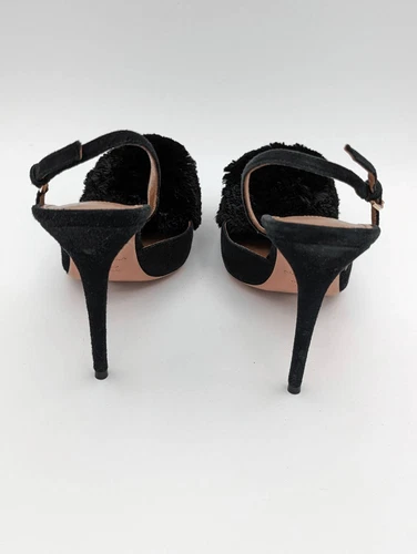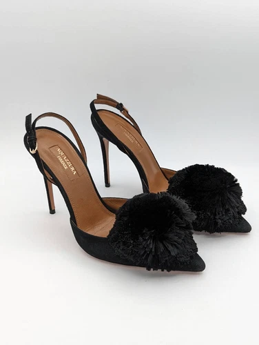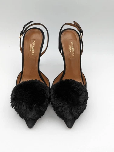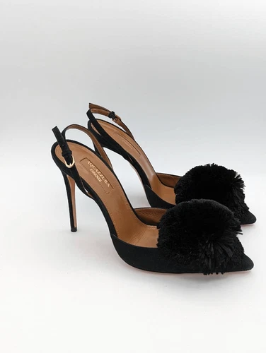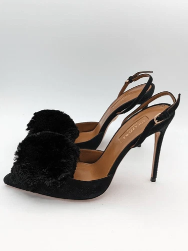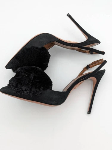 AQUAZZURA Black Powder Puff Suade Sling Back Sandal Size EU 37