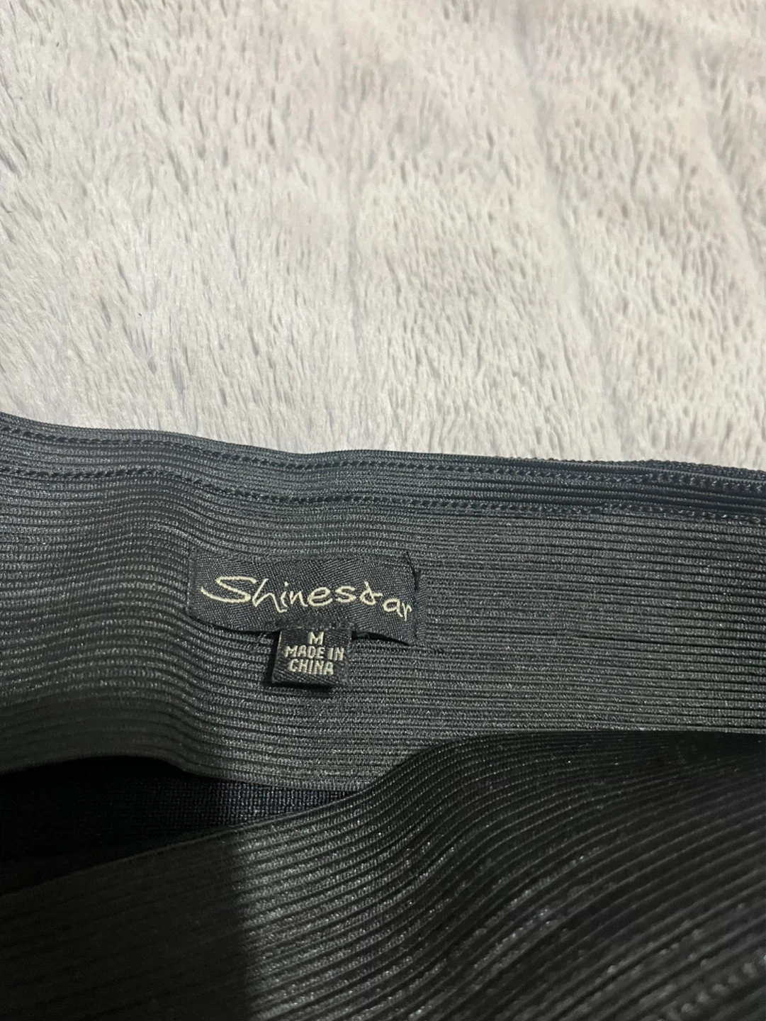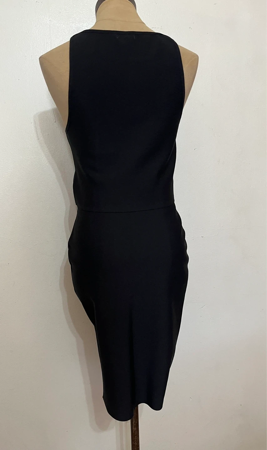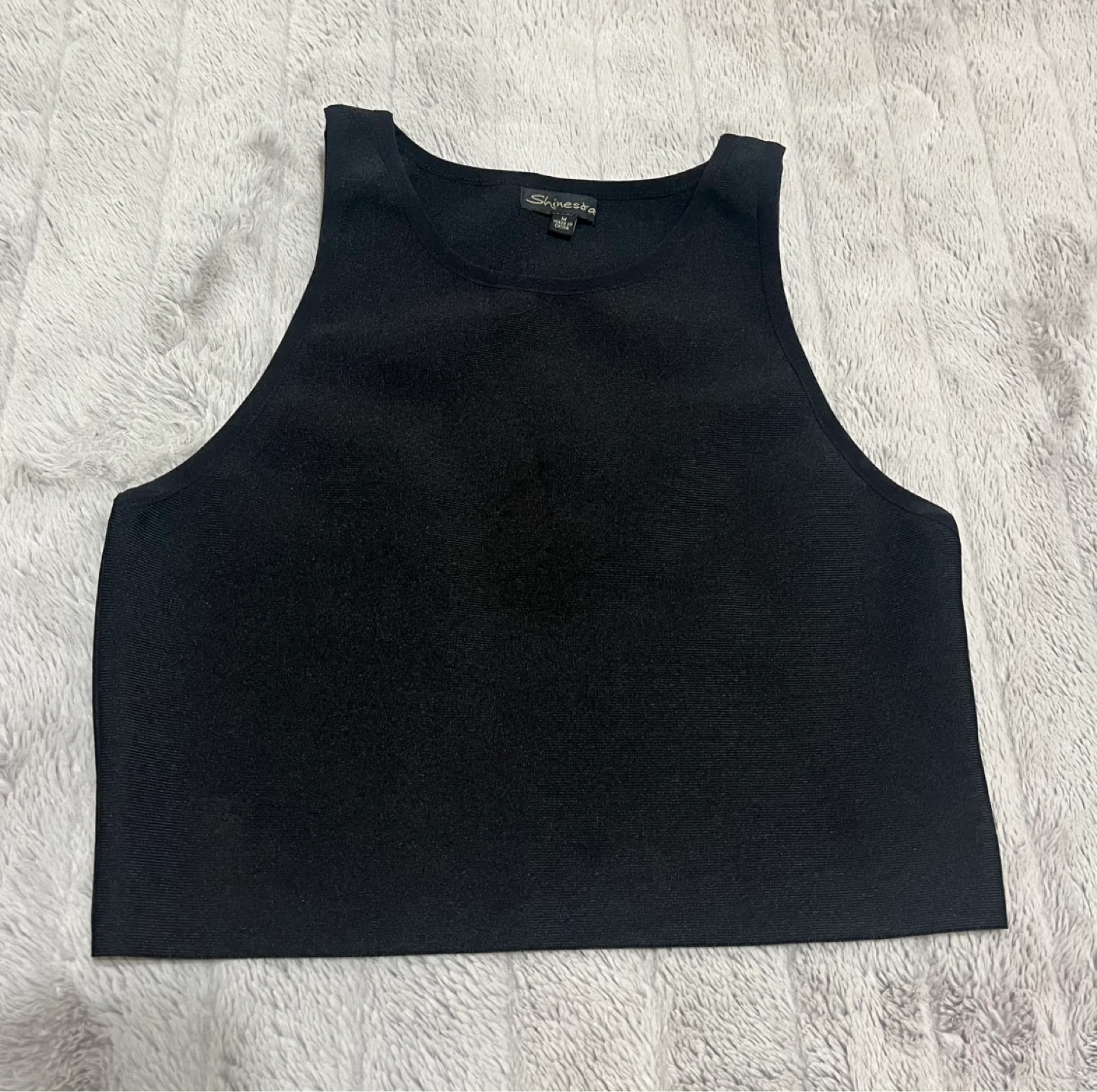 This black tank top and skirt set is a size medium, but very very fitted. Very form fitting and is more like a size small. The material is stretchy and ribbed. Never worn.