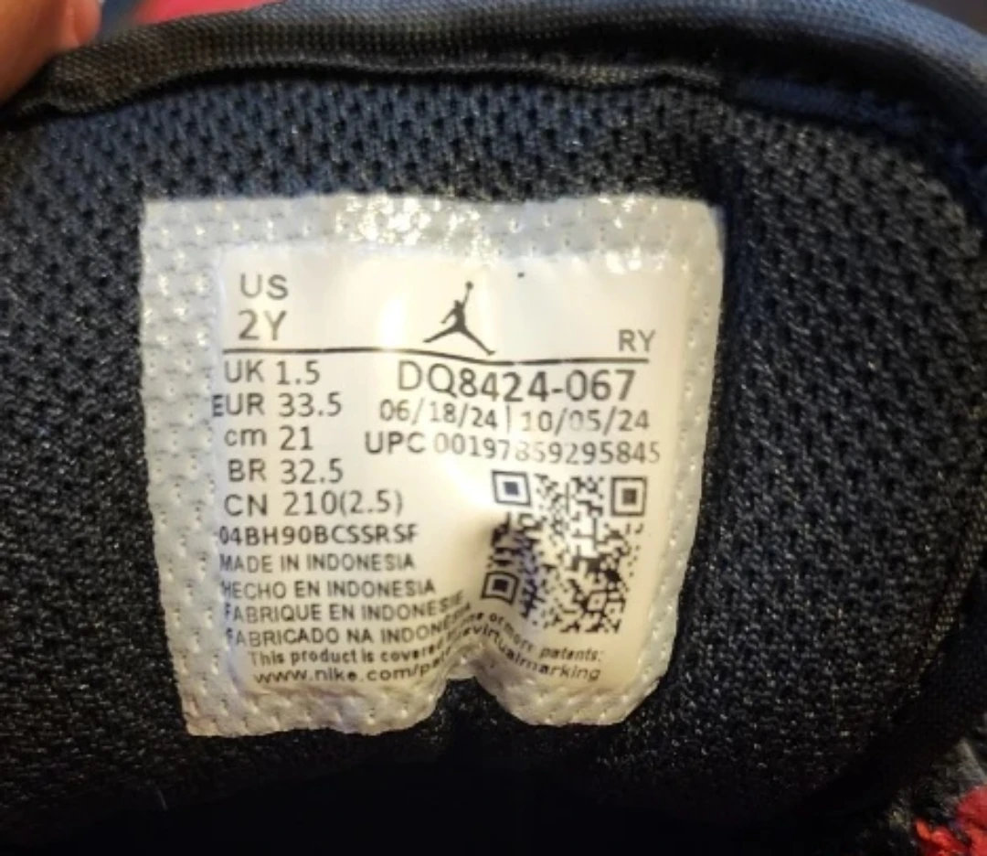 Jordan sneakers for children in US size 2Y. They feature a classic design with a black and red color combination. They are in good condition.