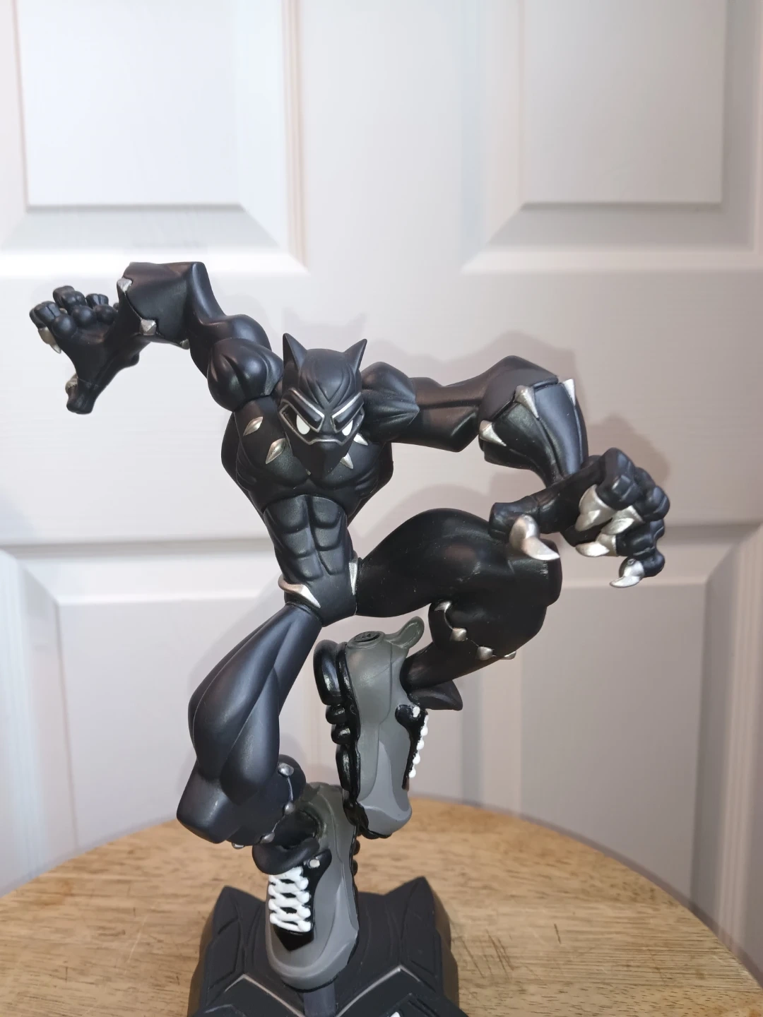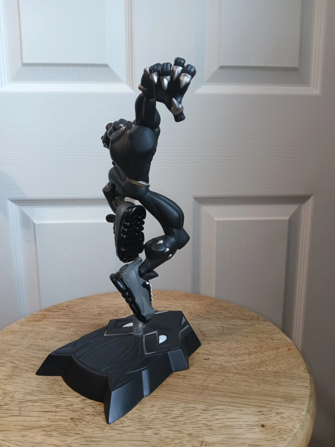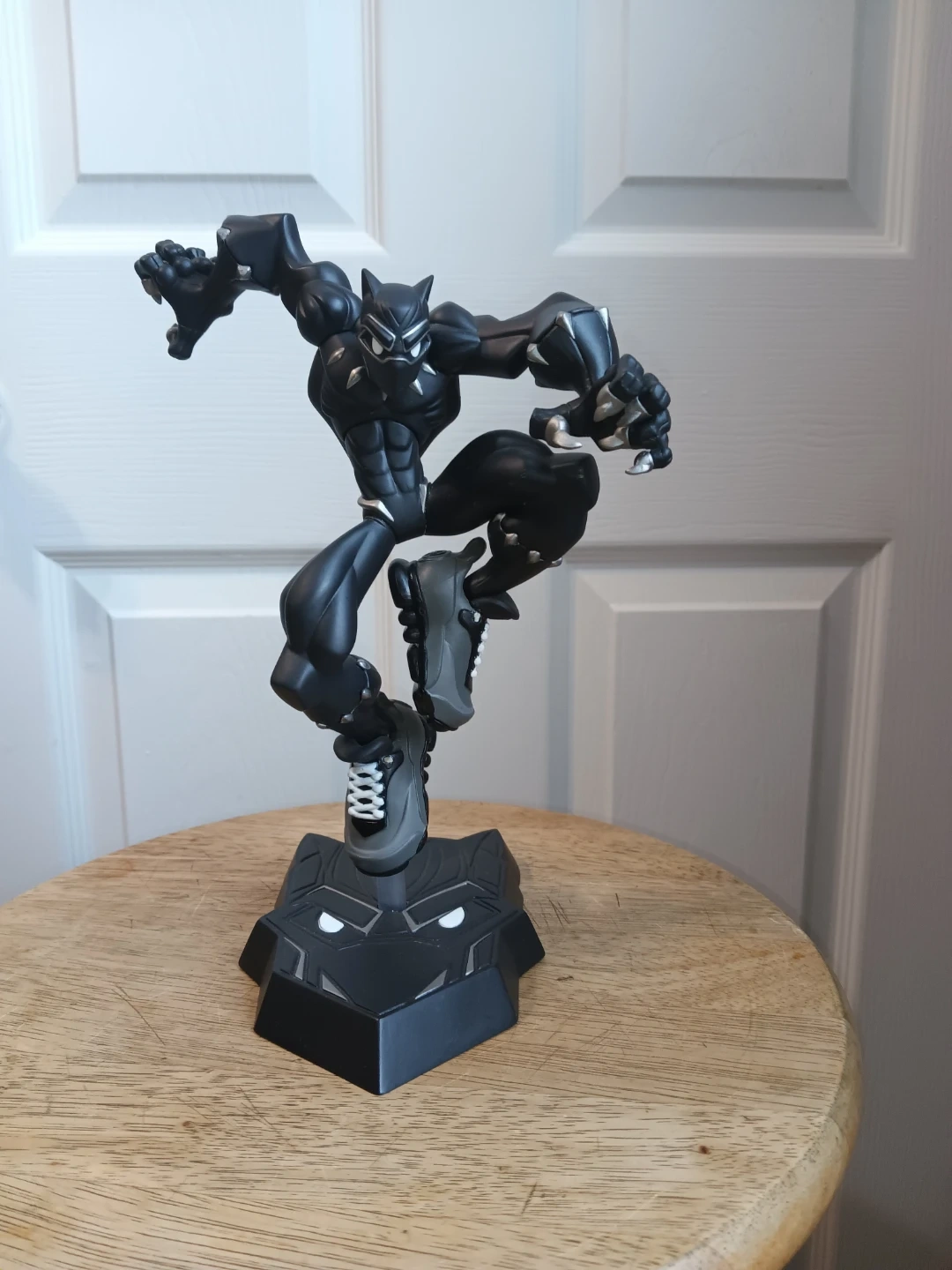 Selling a cool Black Panther collectible figure! It's in great shape and would look awesome on display. The figure features Black Panther in a dynamic pose, ready for action. A must-have for any Marvel fan! Item is from sideshow .Part of Unruly Industries collection. The shoelaces are missing and no original box. Still look great displayed. Sold as is.