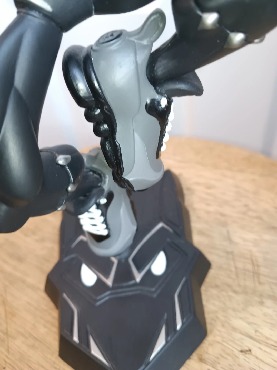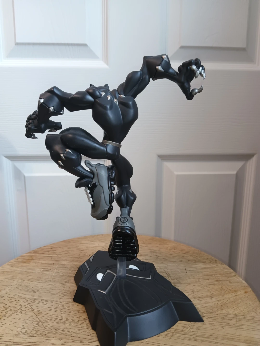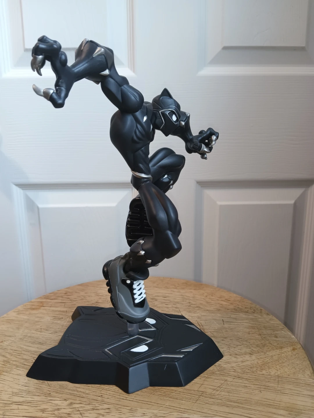 Selling a cool Black Panther collectible figure! It's in great shape and would look awesome on display. The figure features Black Panther in a dynamic pose, ready for action. A must-have for any Marvel fan! Item is from sideshow .Part of Unruly Industries collection. The shoelaces are missing and no original box. Still look great displayed. Sold as is.