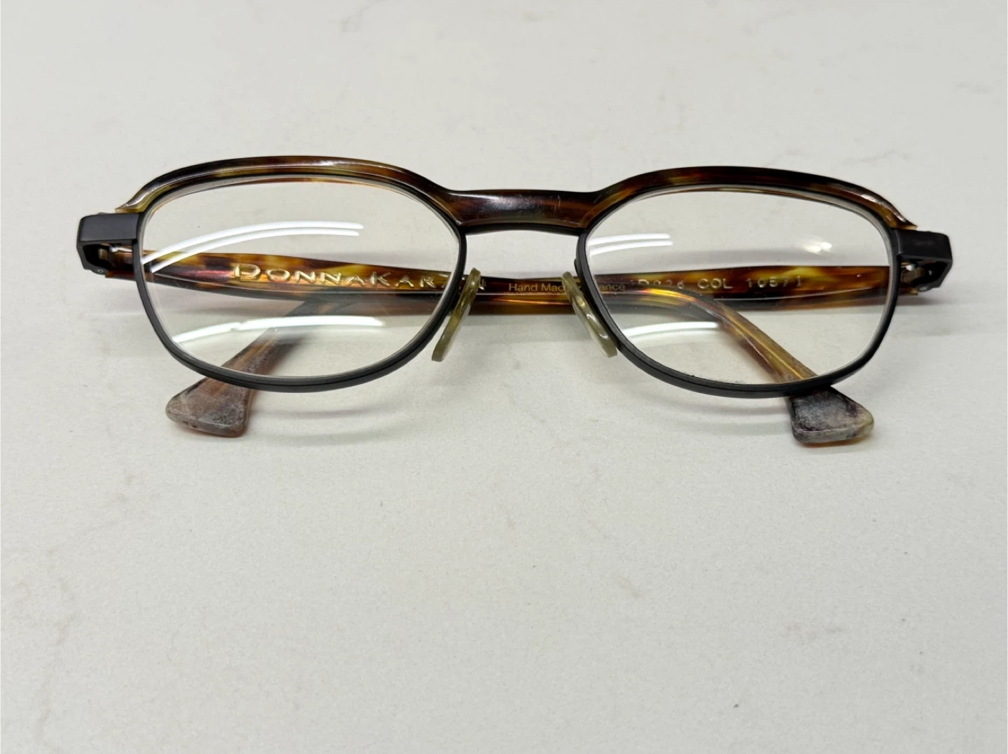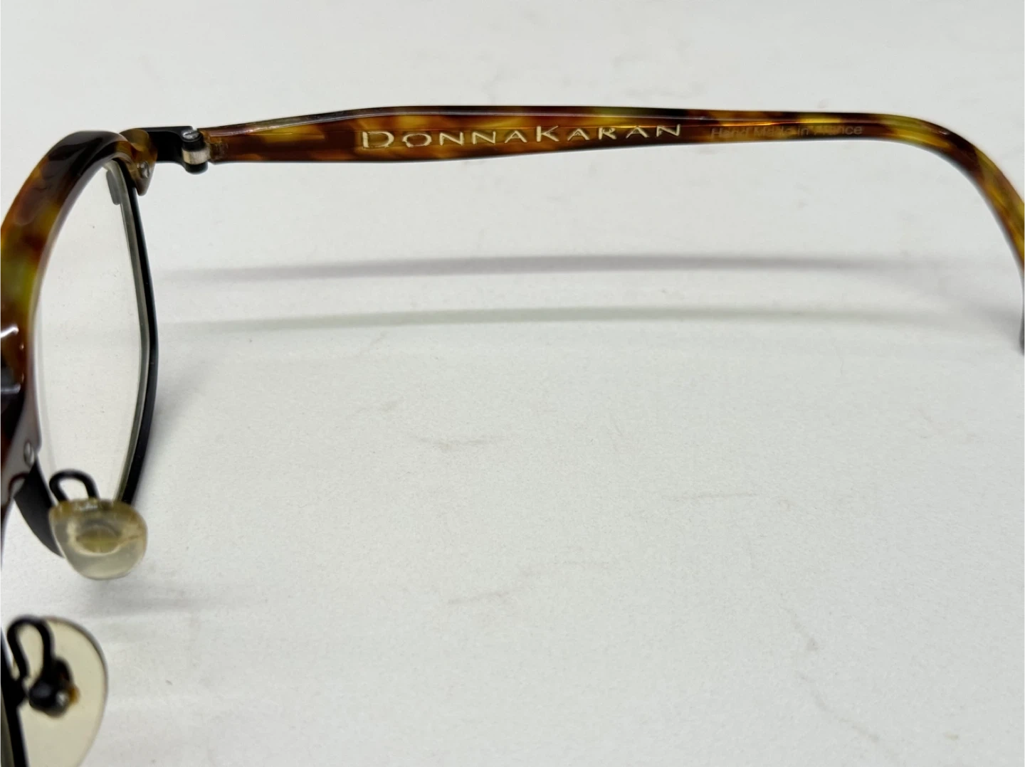 Selling a pair of Donna Karan eyeglasses. They are vintage from 1990’s but are still in great condition! The frame has a tortoise shell pattern and clear prescription lenses.