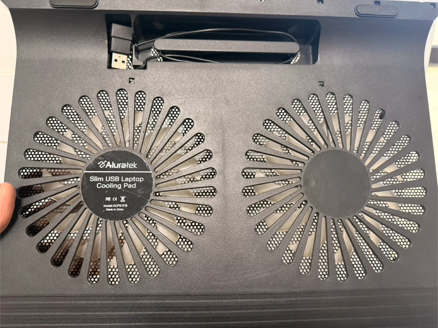 This Aluratek cooling pad features two large fans to help keep your laptop cool during use. It's powered via USB and has a slim design for portability. The mesh surface allows for good airflow.
