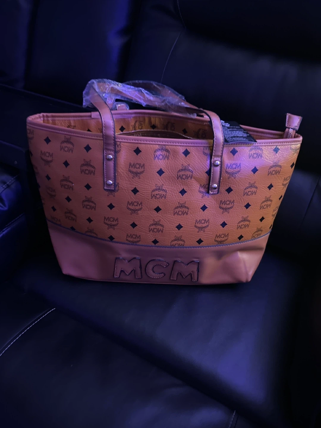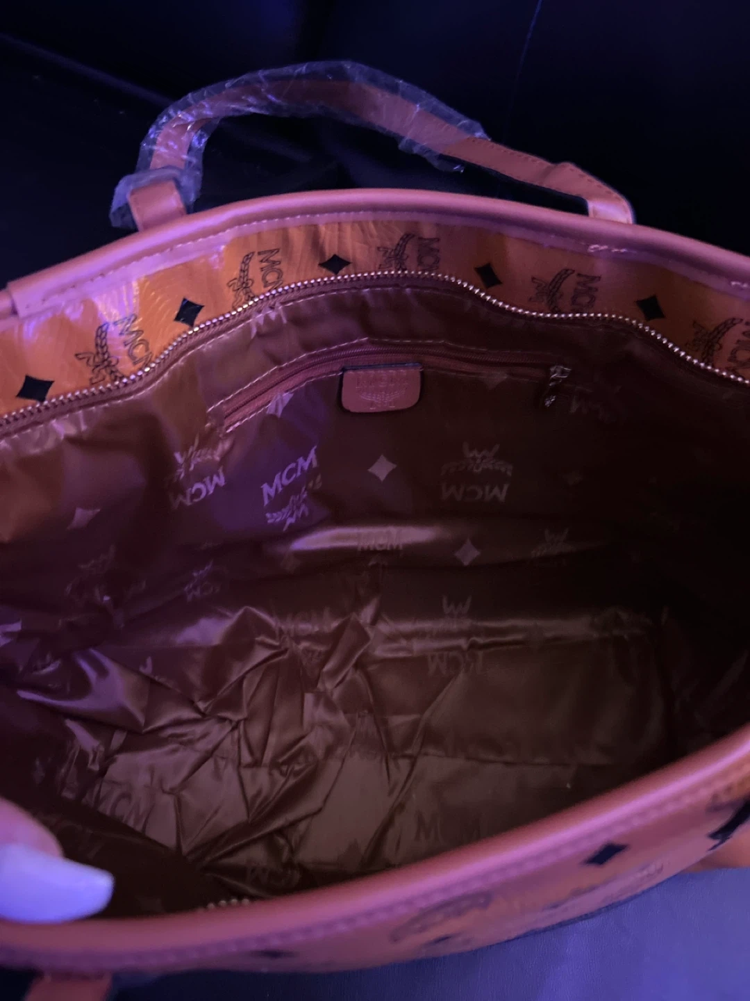 This MCM tote bag features the signature allover logo print. It has a zip-top closure and dual top handles. Leather trim. ( Canal hall)