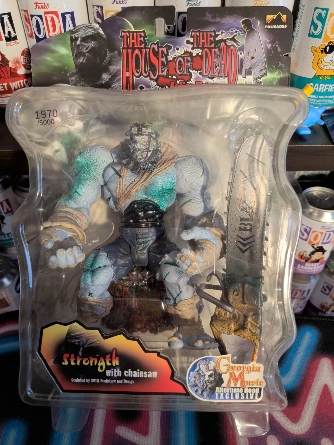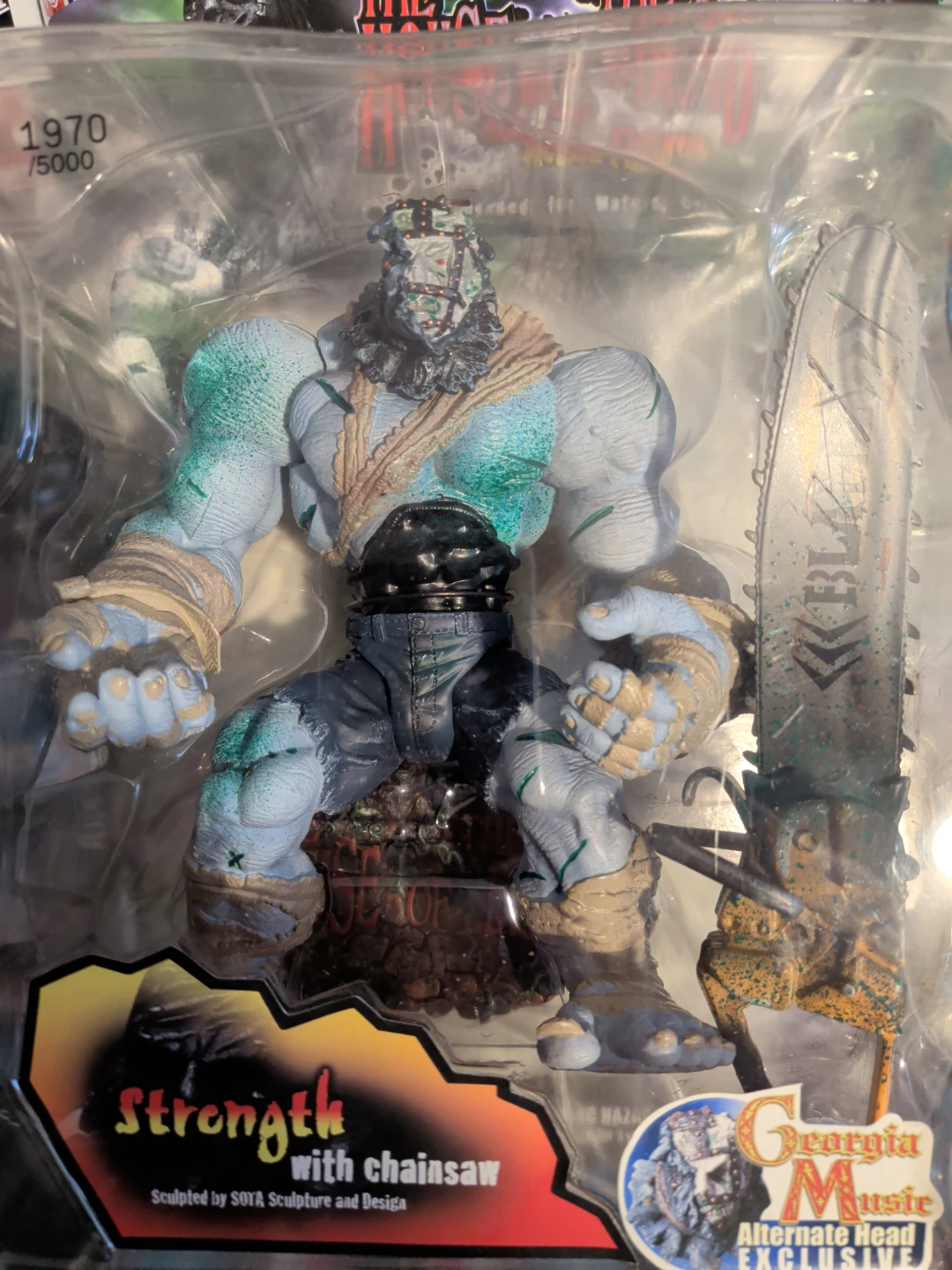 This is The House of the Dead "Strength" action figure, complete with a chainsaw accessory. It's a "Georgia Music Alternate Head Exclusive" edition. Sculpted by SOTA Sculpture and Design.ur 2000