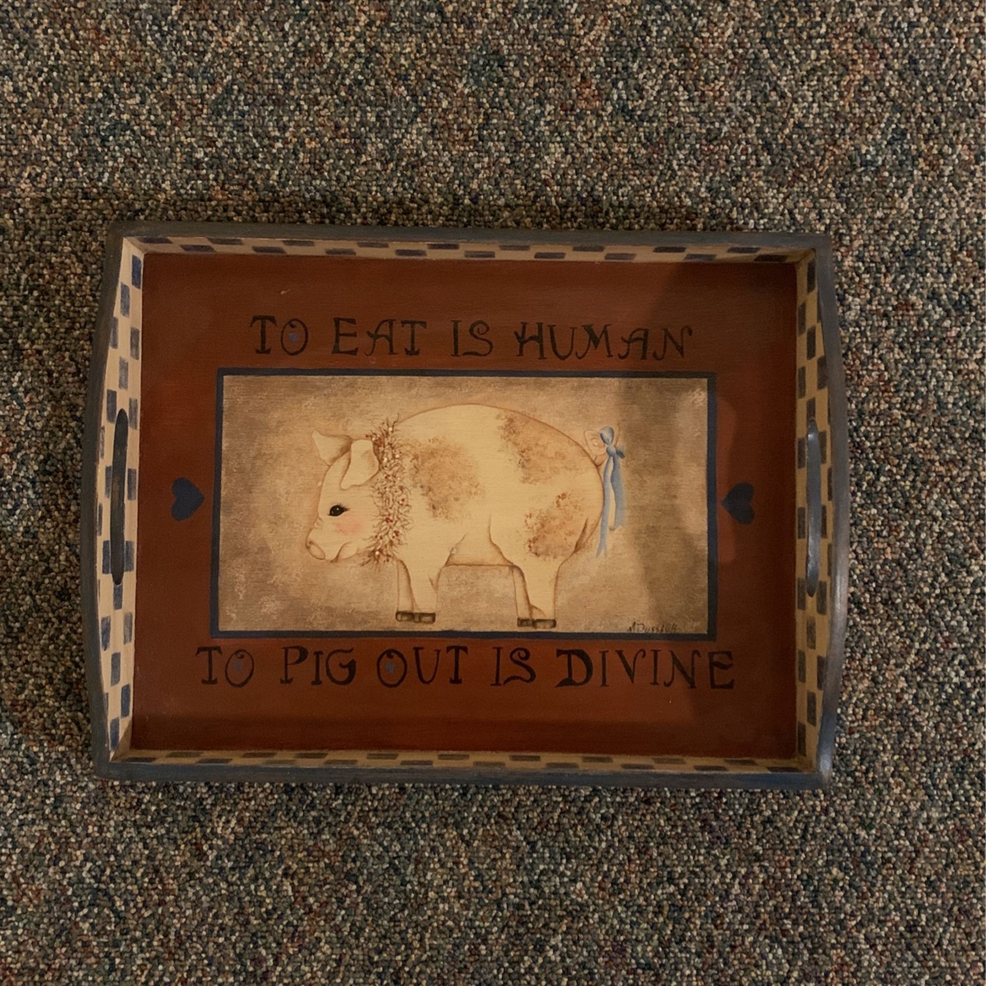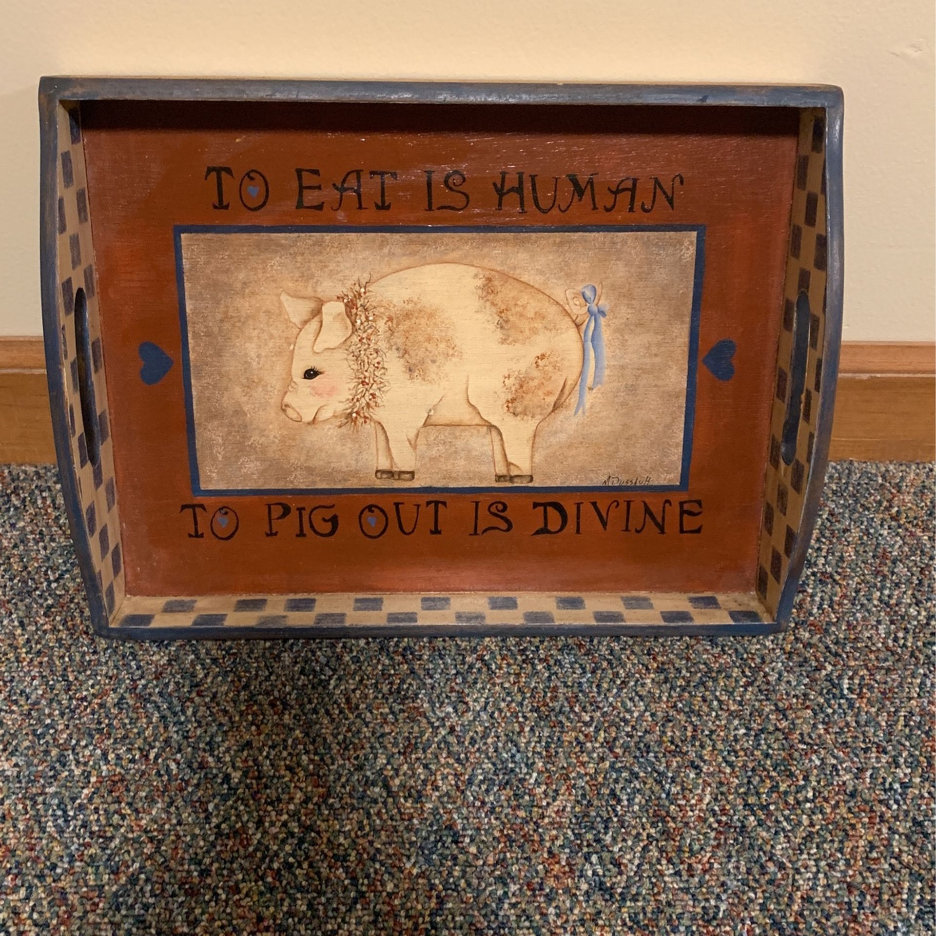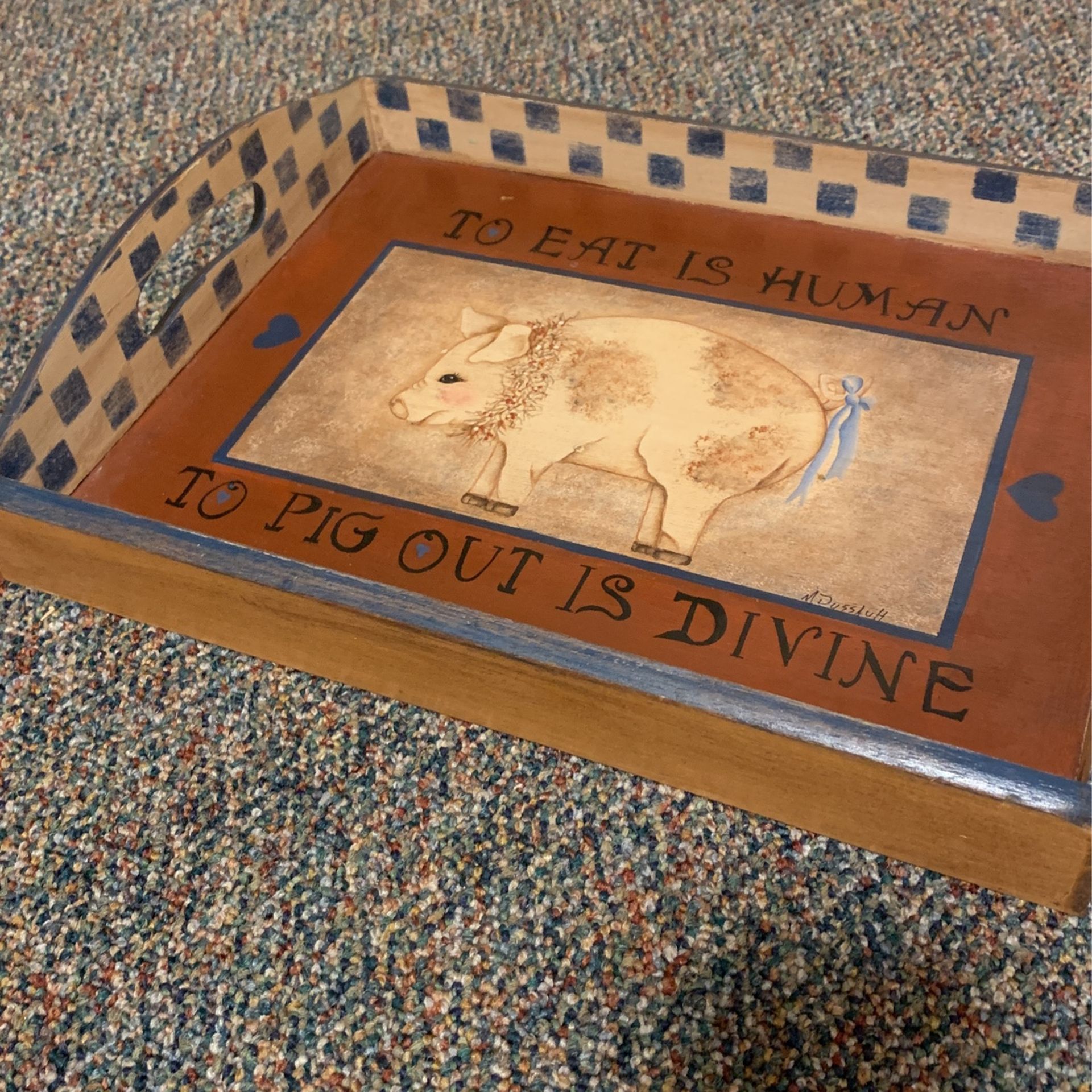 1 / 31 / 3Buy & SellDecorative TrayDecorative Tray$812 x 9.5 x 1.5 painted wooden tray with handles. Picture hanger on back. I had it on the wall above my oven. Like new condition.WHERE TO MEETCheck LocationView MapSELLERSusanLombard100 reviews0 chats·0 favorites·0 viewsSEND CHAT TO SELLERHi Susan! I’m interested in your listing.Hi Susan! I’m interested in your listing.Get the Karrot app to chatSign In to chat