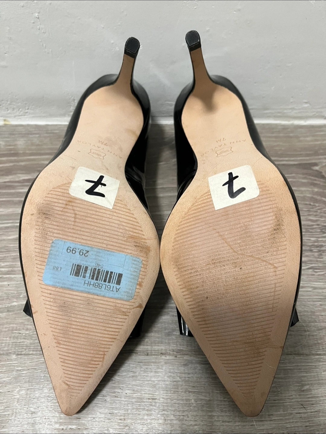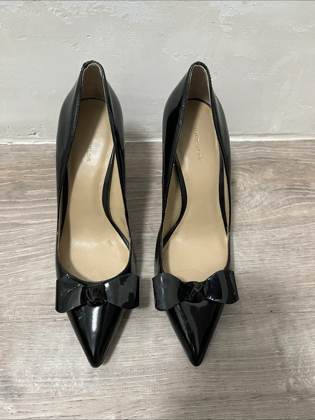 Selling a pair of Ann Taylor heels in size 7M! Black patent leather with a bow detail. Originally bought for $29.99.