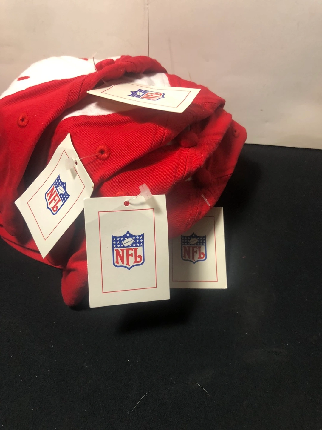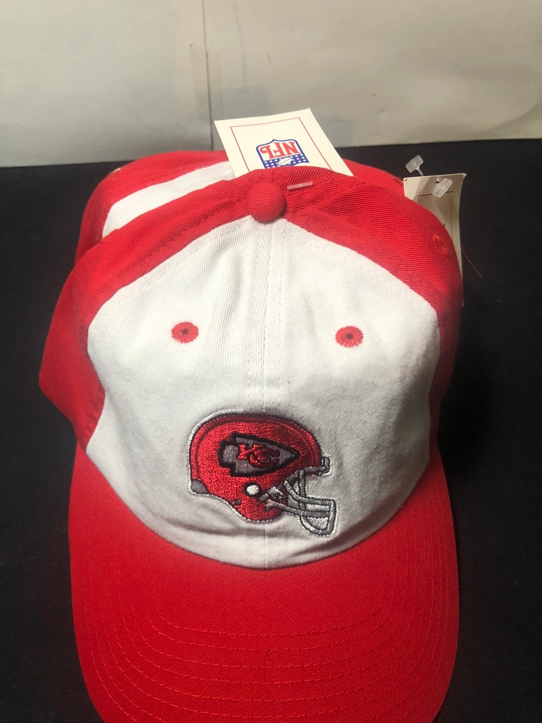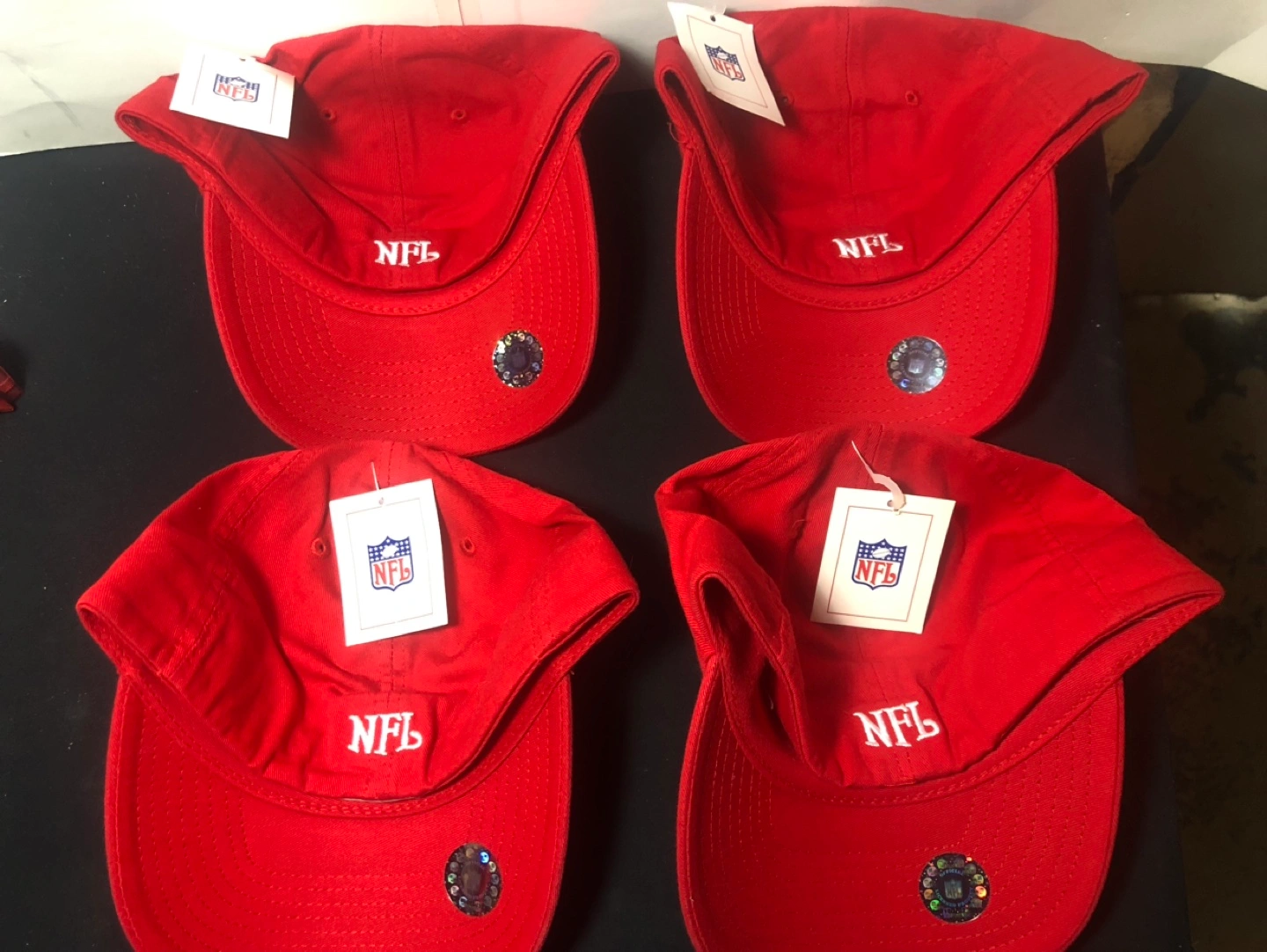 Four hats total. Four red NFL hats with tags. All Kansas City Chiefs hat. All new with tags