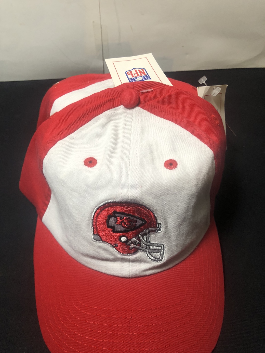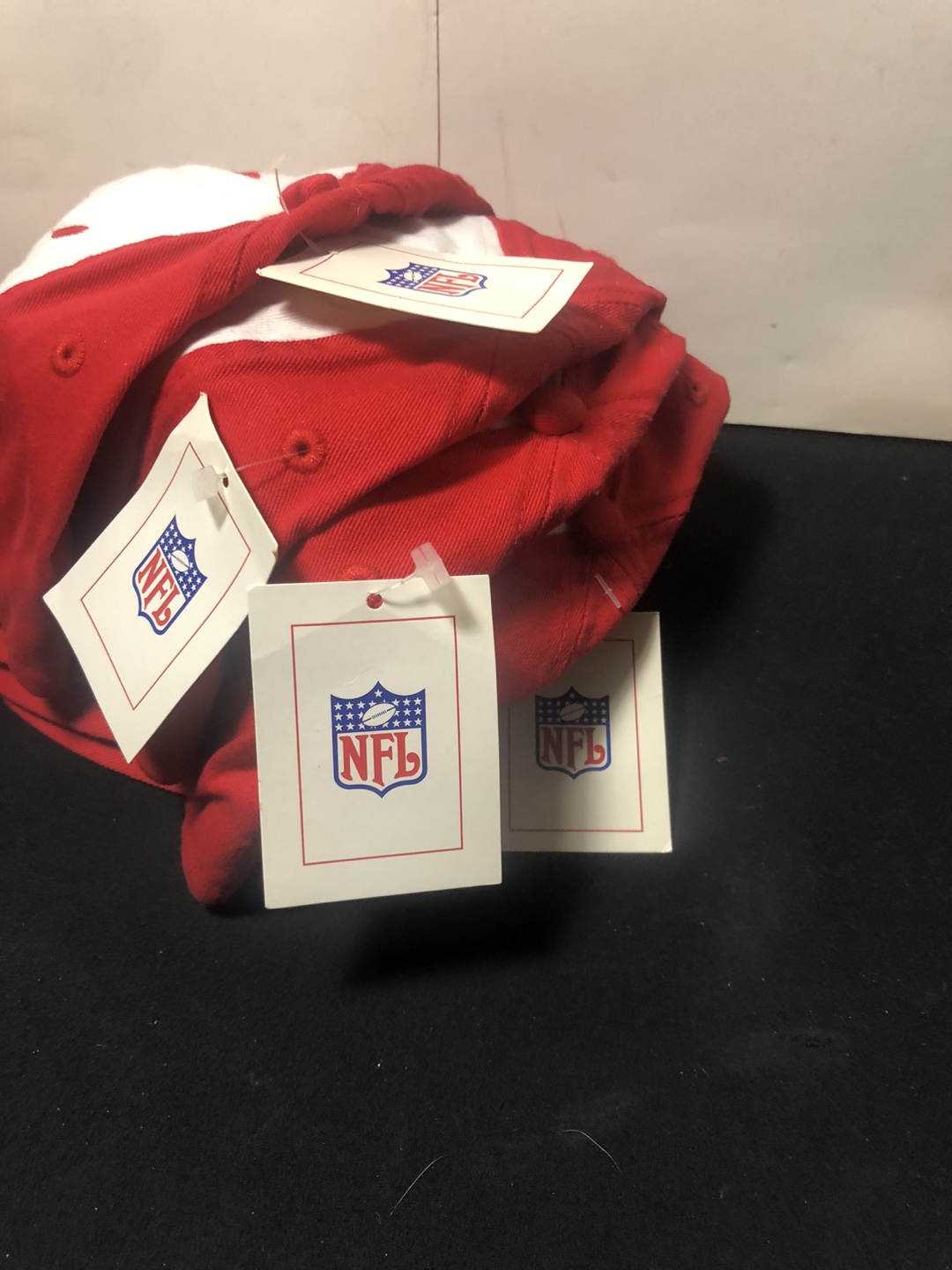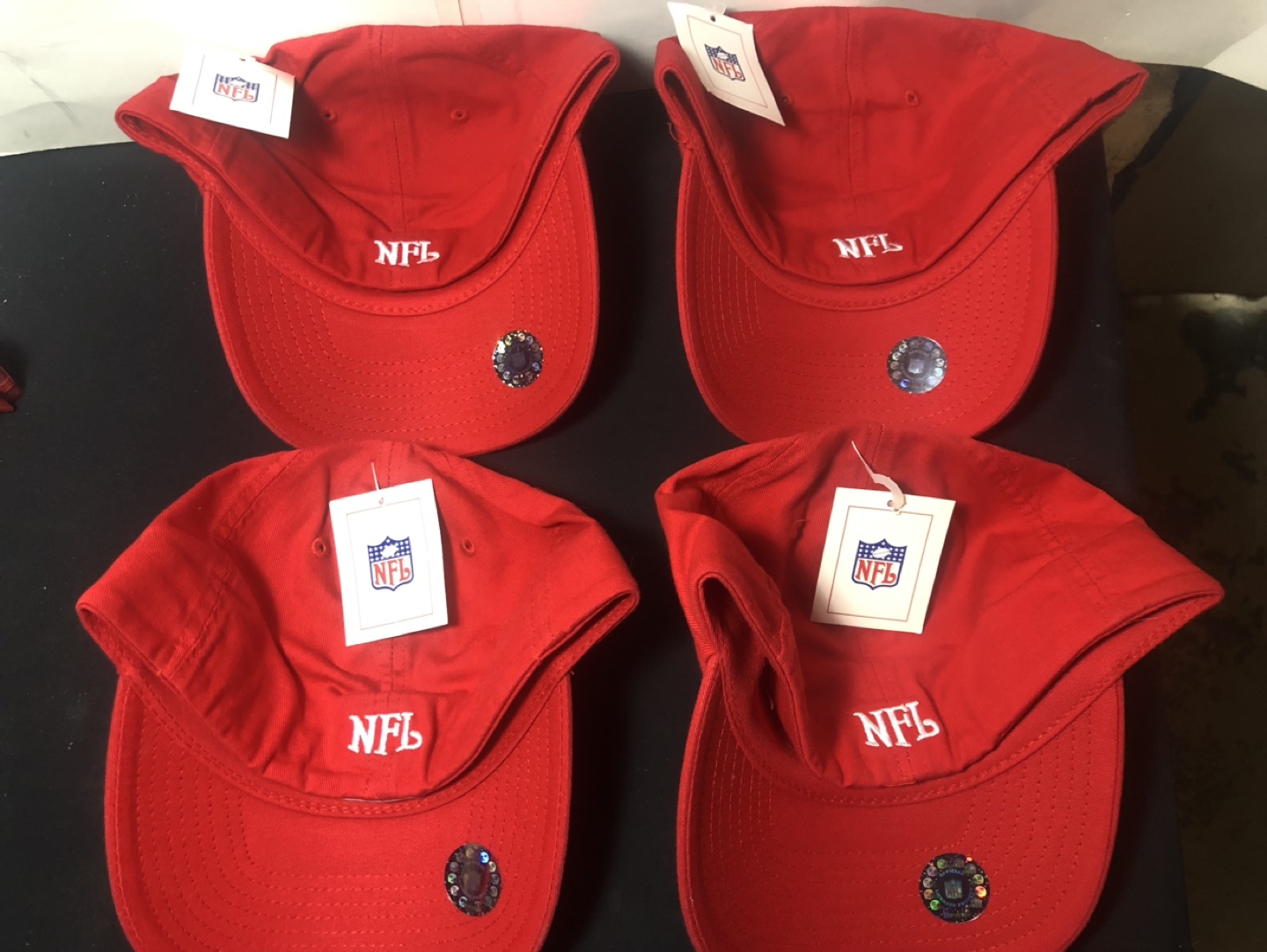 Four hats total. Four red NFL hats with tags. All Kansas City Chiefs hat. All new with tags