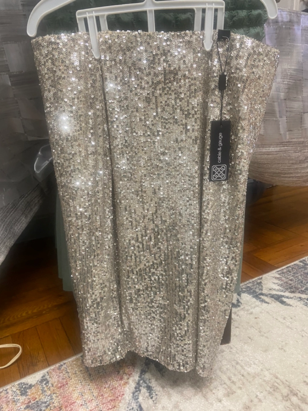 Selling a Cable & Gauge sequin skirt and top set! The top has long, bell sleeves and a v-neck. The skirt is a straight style. Perfect for a night out!