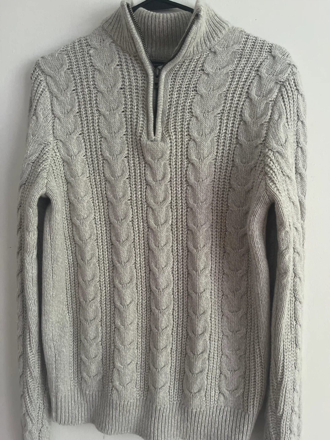 15Cozy cable knit sweater with a quarter zip! The neutral gray color makes it easy to pair with anything. Perfect for layering or wearing on its own