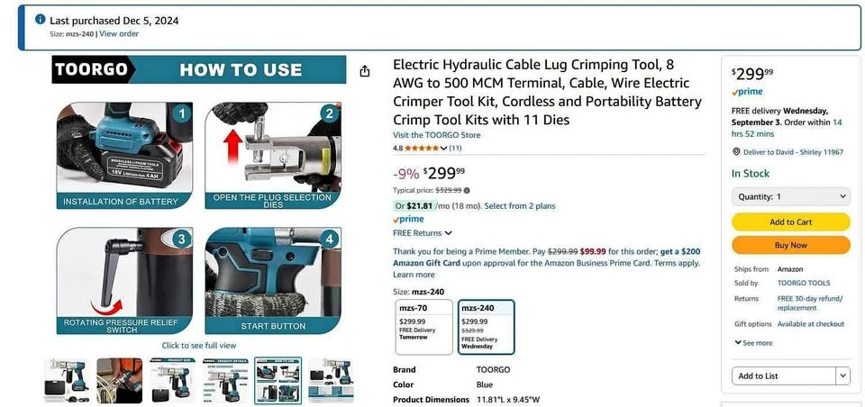 60New, never used battery powered crimping tool. Great tool for a great price