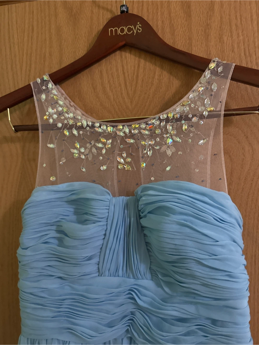 Selling a beautiful light blue dress from CacheIt has a lovely embellished neckline and a flowing design. Perfect for a special occasion or a night out