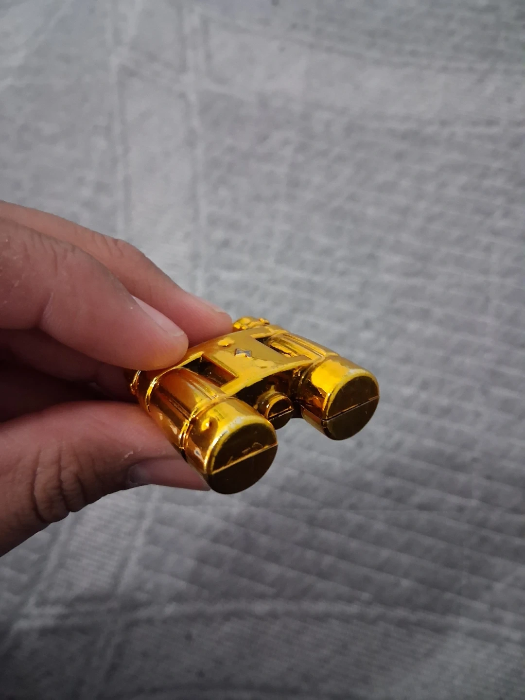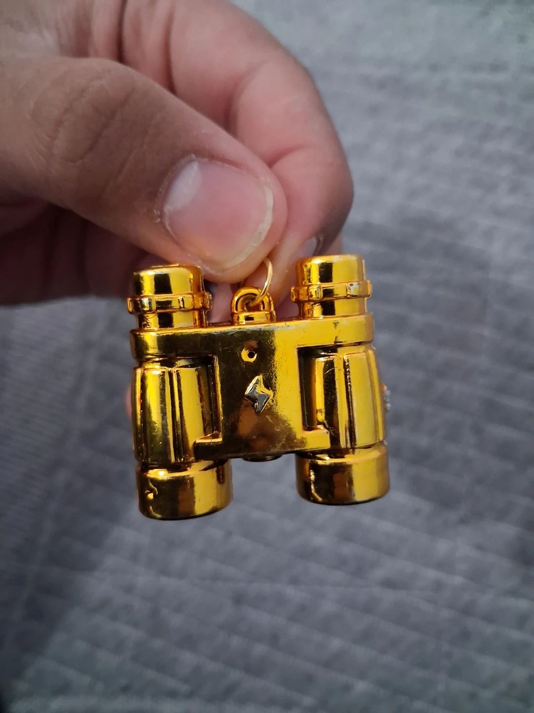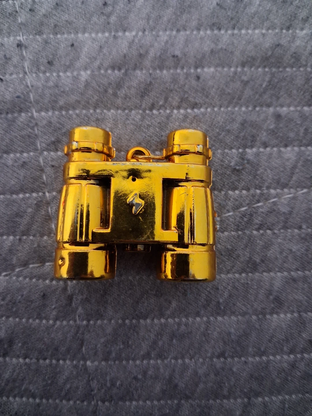 This is a decorative gold-colored mini binoculars charm. It features a small loop for attaching to a keychain or as a pendant. Perfect for adding a unique touch to your accessories!
