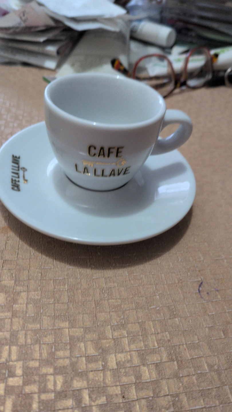 Selling a Cafe La Llave espresso cup and saucer set. It's a charming little set for enjoying your favorite espresso! The cup and saucer are in great condition and ready for a new home