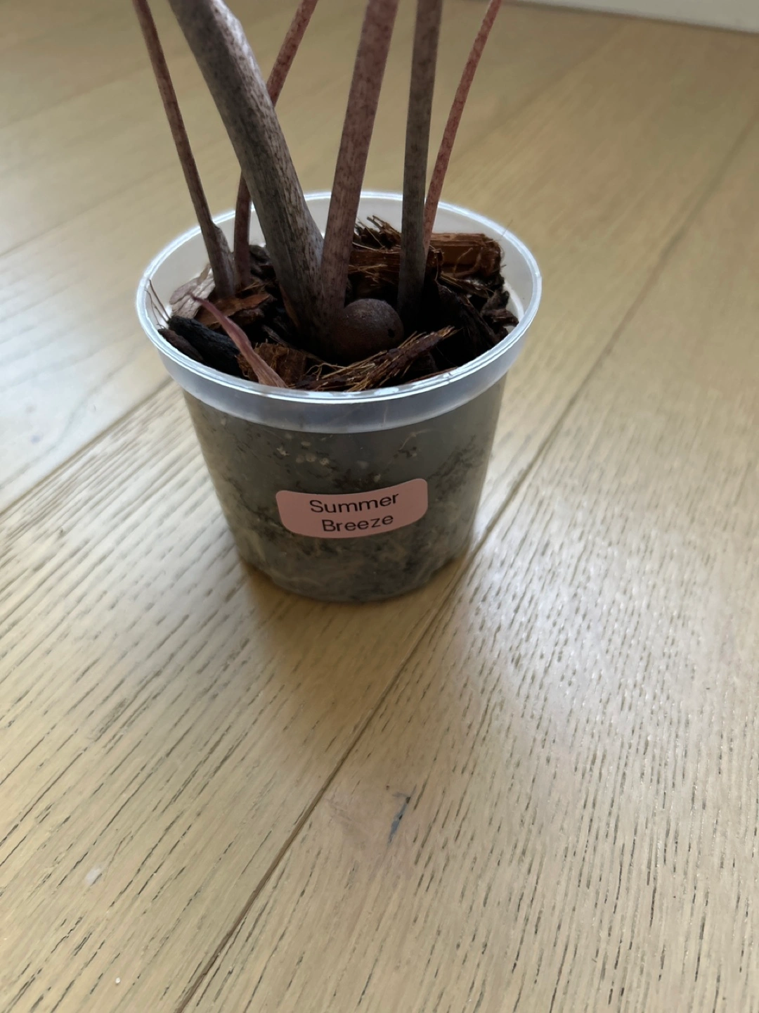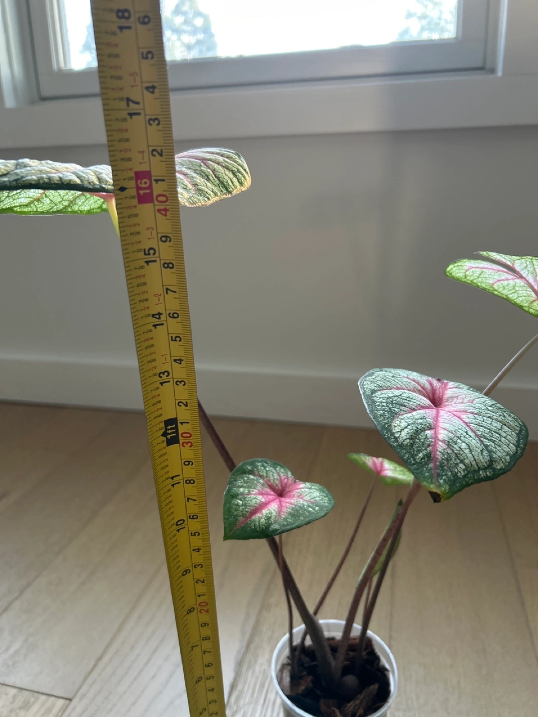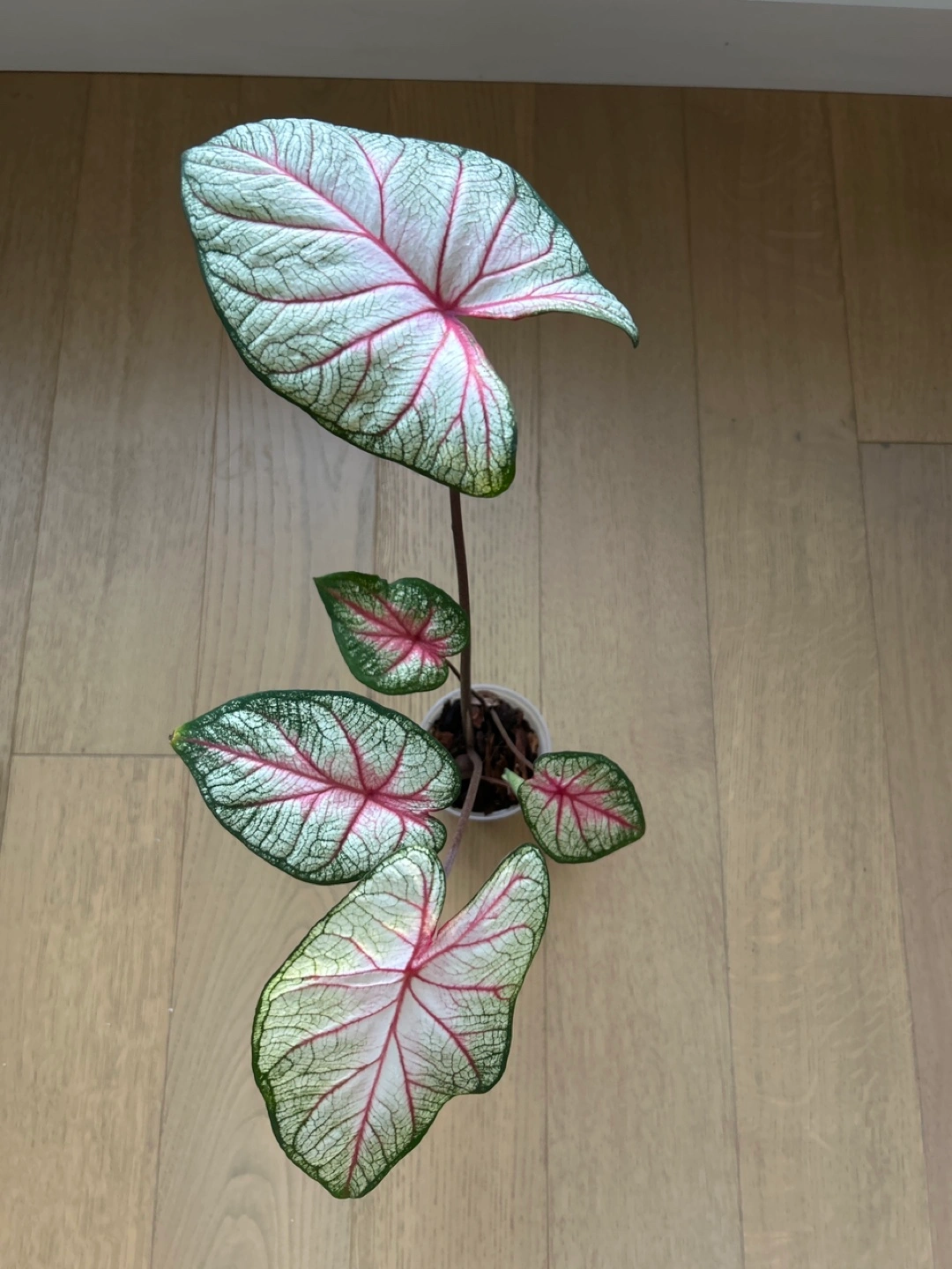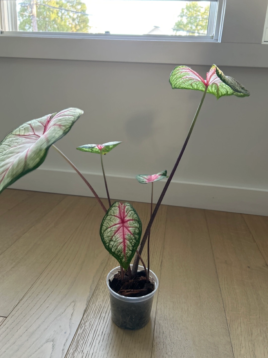 lovely Caladium plant 'Summer Breeze' variety Grown from fresh bulbs this year. It's currently potted in a small plastic container with high quality chunky soil (aroid mix) Healthy roots!