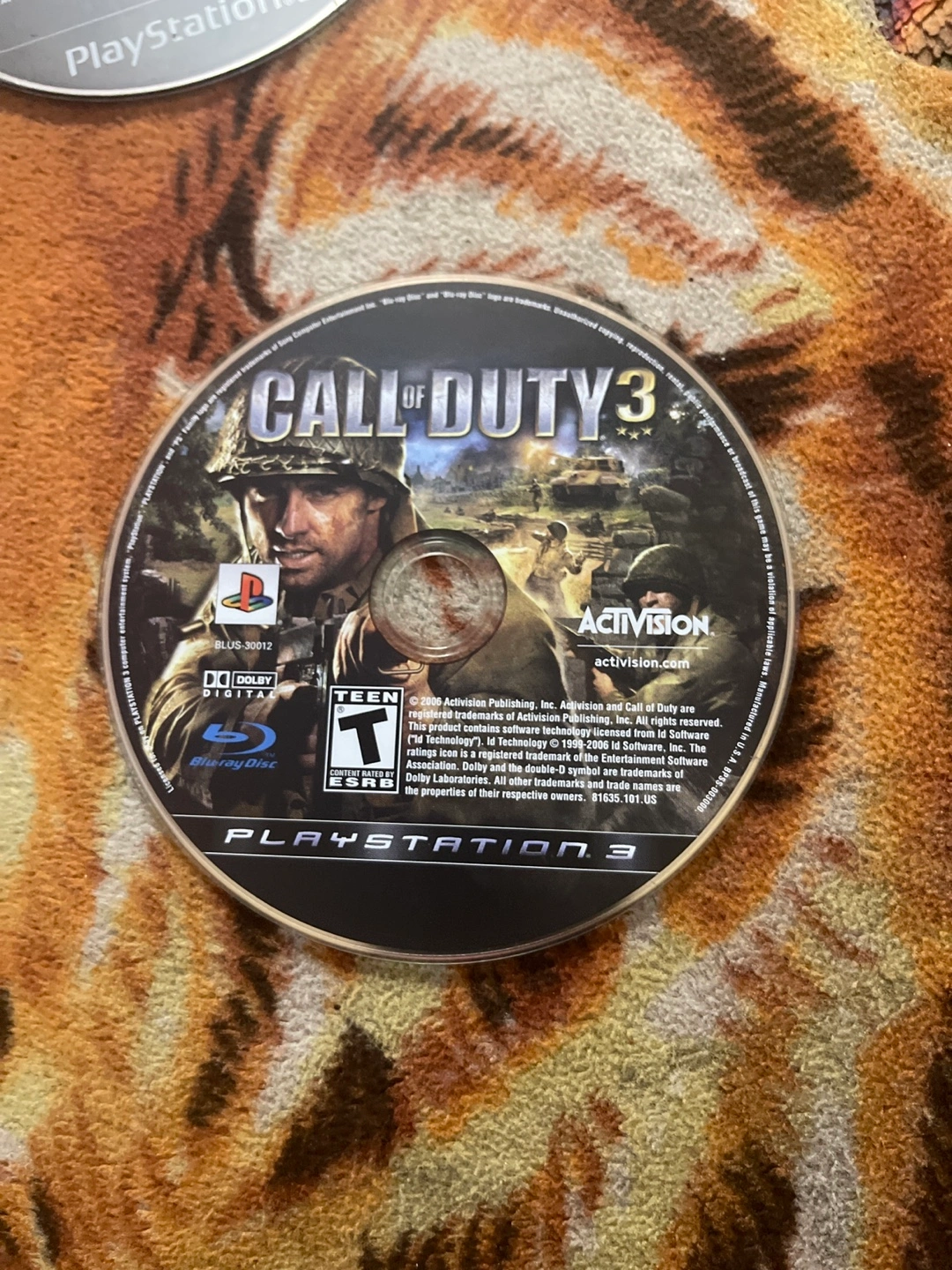 Selling Call of Duty 3 for the Playstation 3 (PS3). Rated T for Teen. Enjoy!