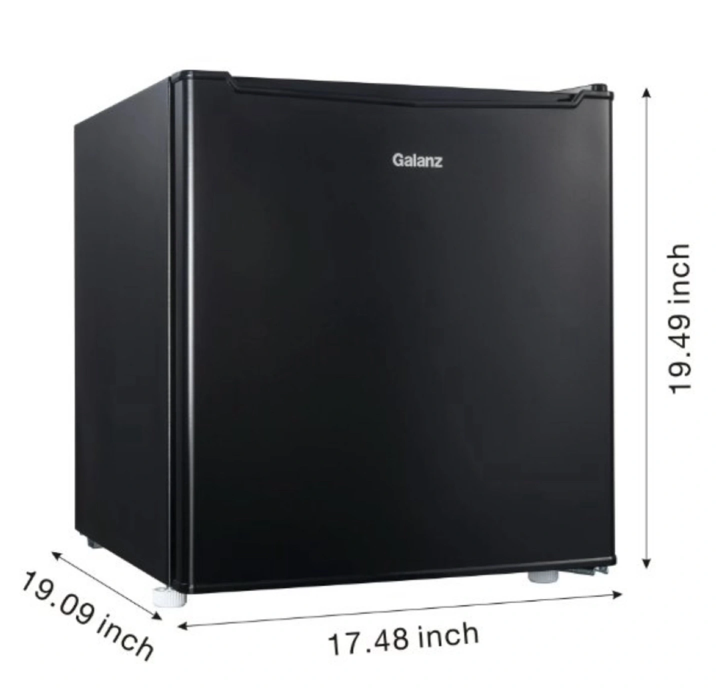 65Selling a compact Galanz mini fridge in black. It's perfect for a dorm room, office, or small apartment. The dimensions are approximately 19.49 inches tall, 19.09 inches wide, and 17.48 inches deep. Great for keeping your drinks and snacks cold! Originally $120 + tax Used for a week while waiting for my replacement fridge FREE DELIVERY IN CHICAGO/EVANSTON
