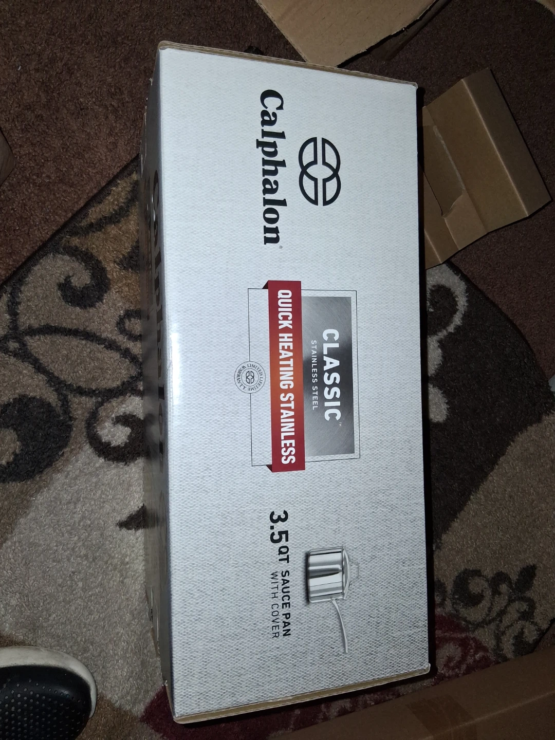10Selling a brand new Calphalon Classic 3.5 qt sauce pan with cover! This is a quick heating stainless steel pan. It is still in its original box
