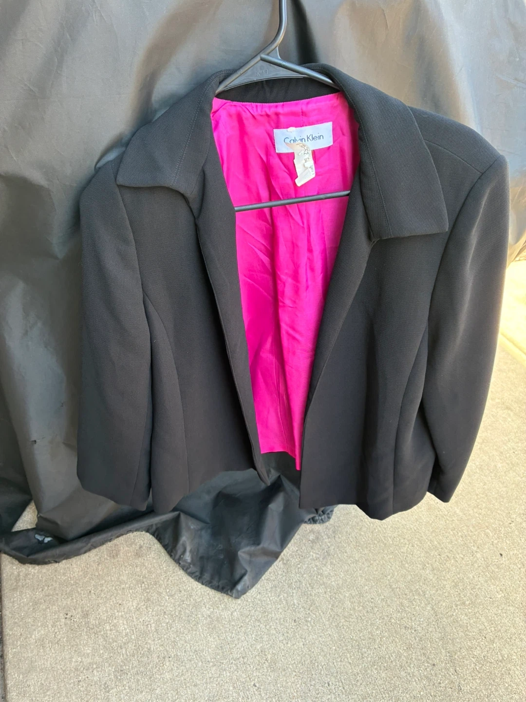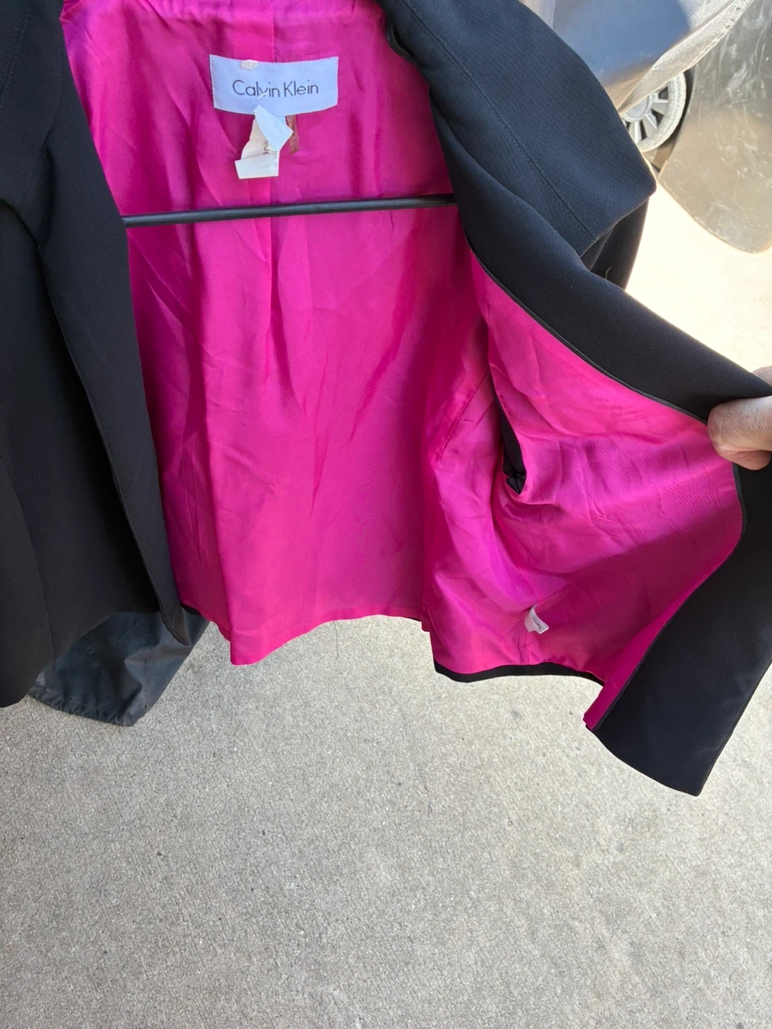 Calvin Klein Black Blazer - Size 10 Selling a Calvin Klein blazer in black with a vibrant pink lining! It's a size 10 and in great condition. This blazer is perfect for adding a pop of color to your professional or casual outfits Pick up in Norridge Price $ 10