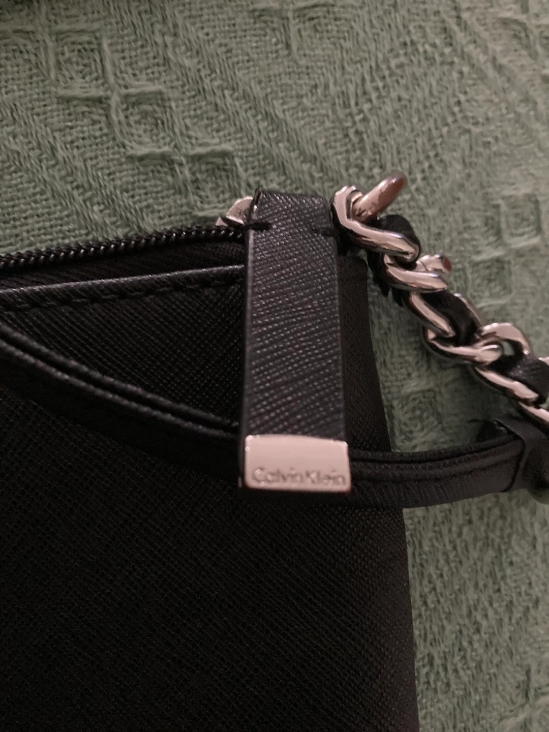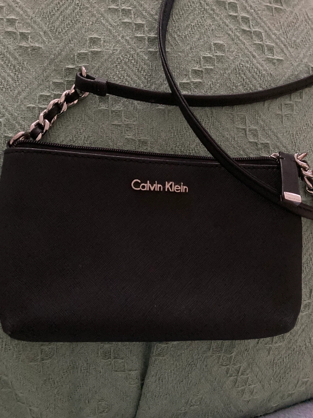 Selling a Calvin Klein crossbody bag in black. It's in great condition and has a chain detail on the strap. Perfect for everyday use!