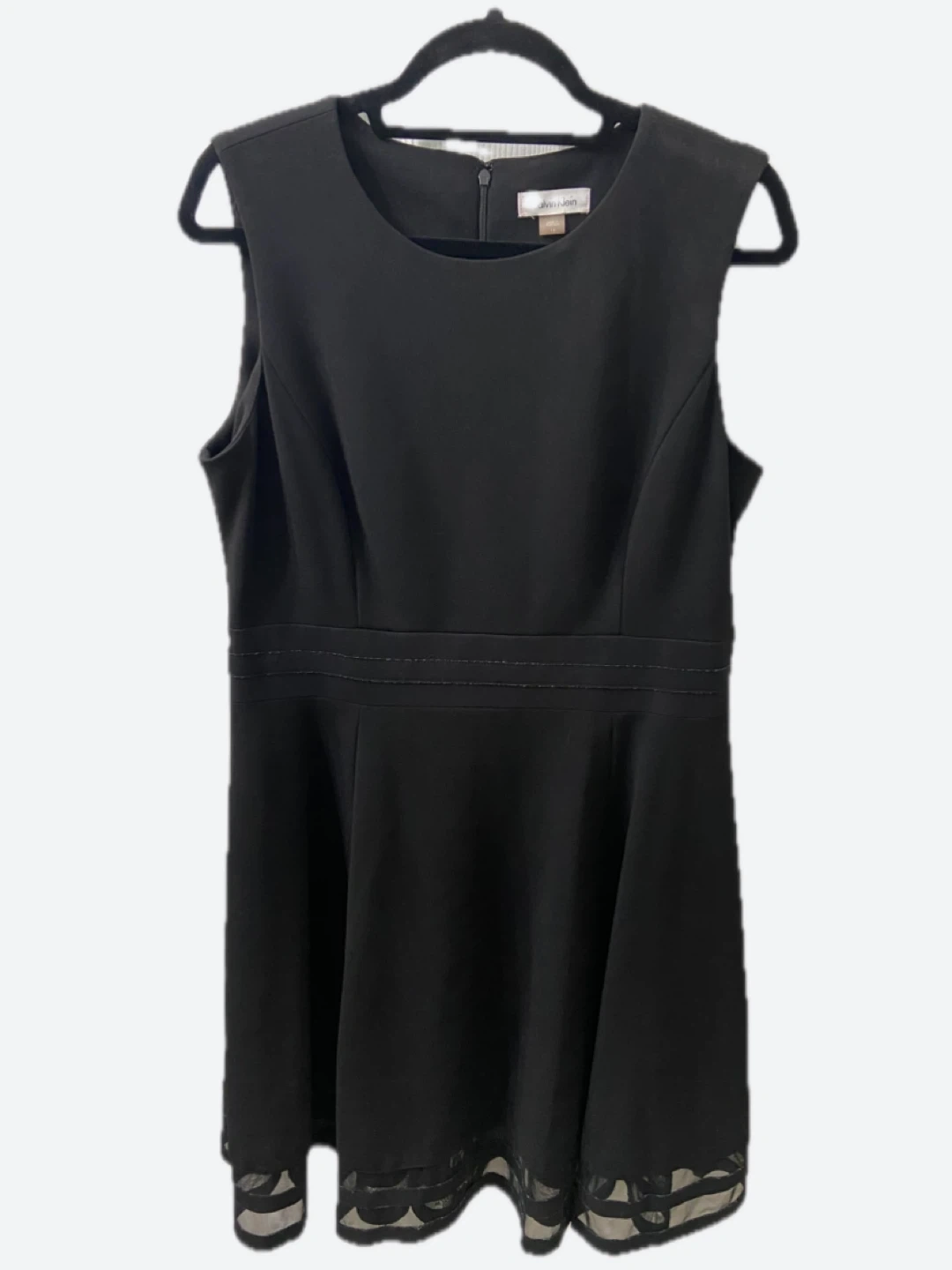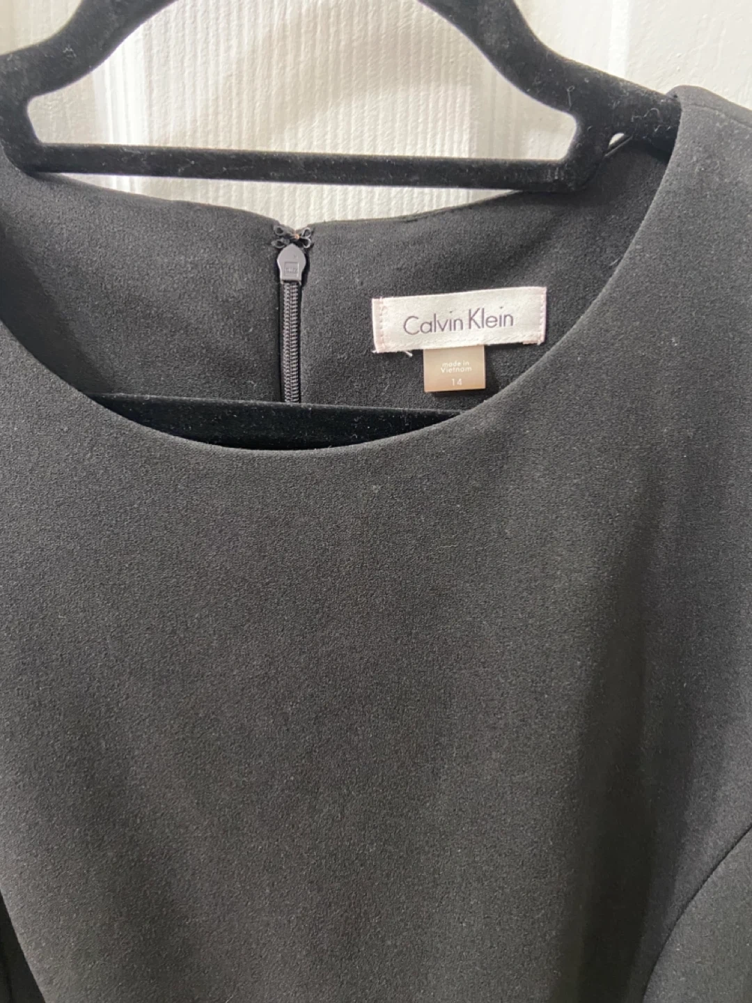 10Selling a Calvin Klein black dress in size 14. It's a stylish and versatile piece for any wardrobe. The dress features a classic design with a flattering fit-and-flare silhouette. Perfect for both casual and formal occasions!