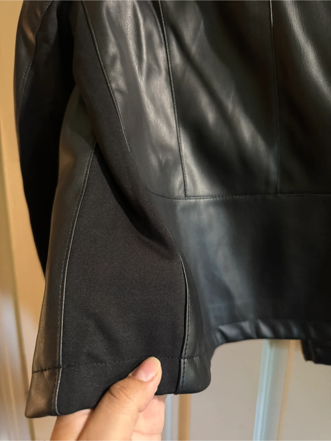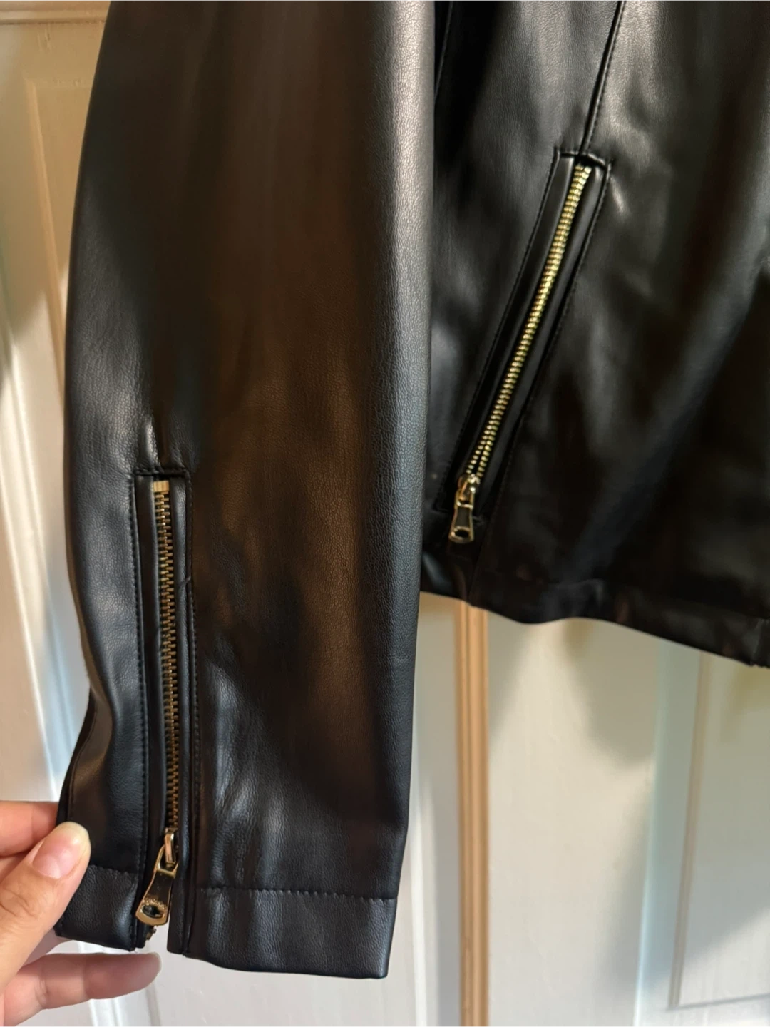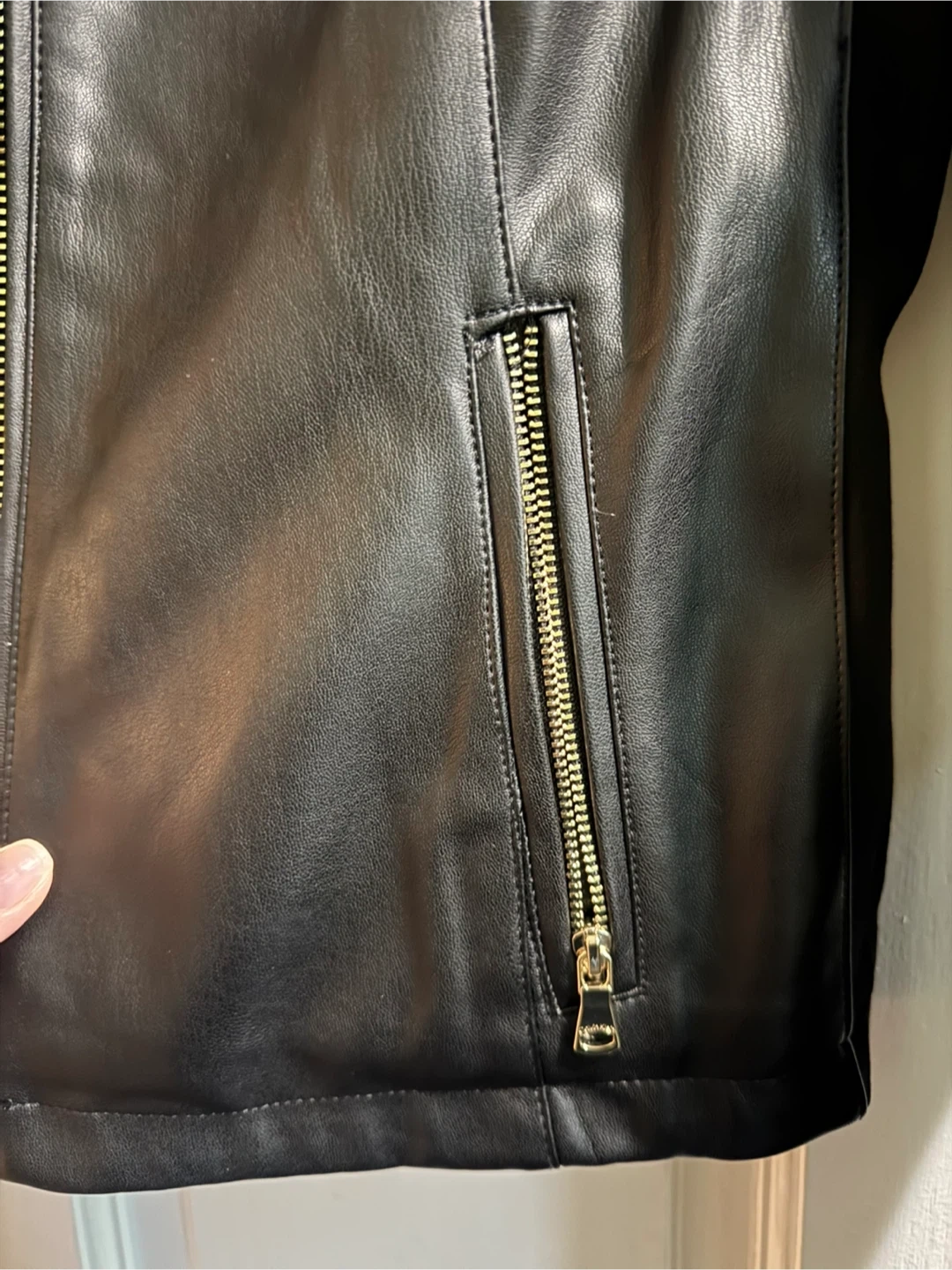 10Selling a Calvin Klein black faux leather jacket in size medium. This stylish jacket features gold zippers and a fun leopard print lining. It's in great condition and ready for a new home!