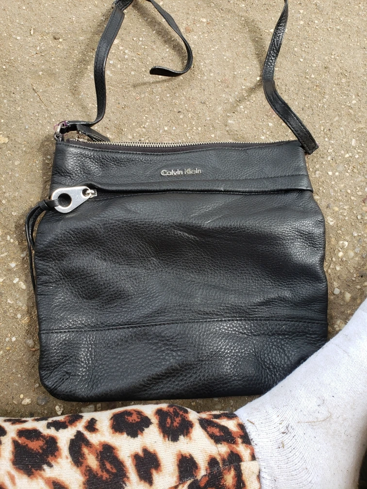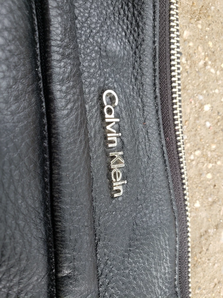 Selling a Calvin Klein black leather crossbody bag! It's in good condition and perfect for everyday use. The bag features a zipper closure and a long strap for comfortable wear