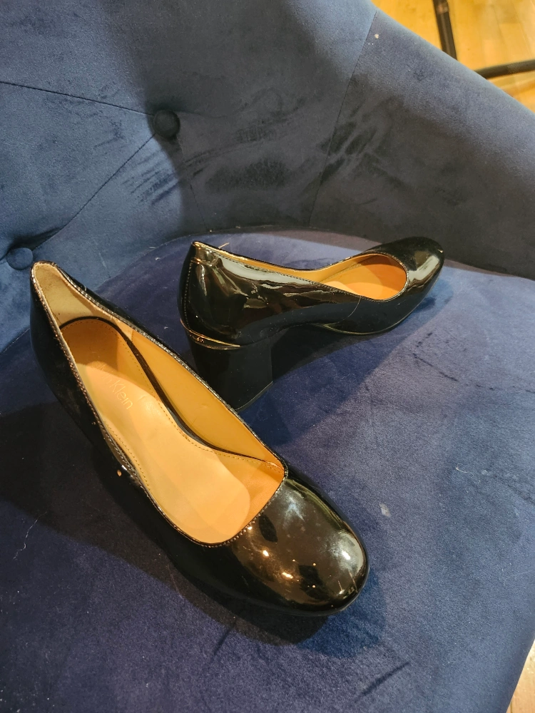 Classic black patent leather heels from Calvin Klein! These are in great condition and ready for a new home. Perfect for dressing up or down