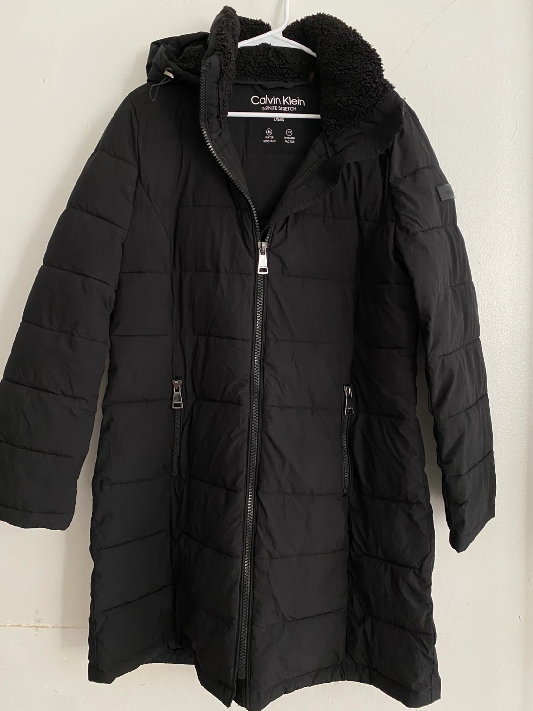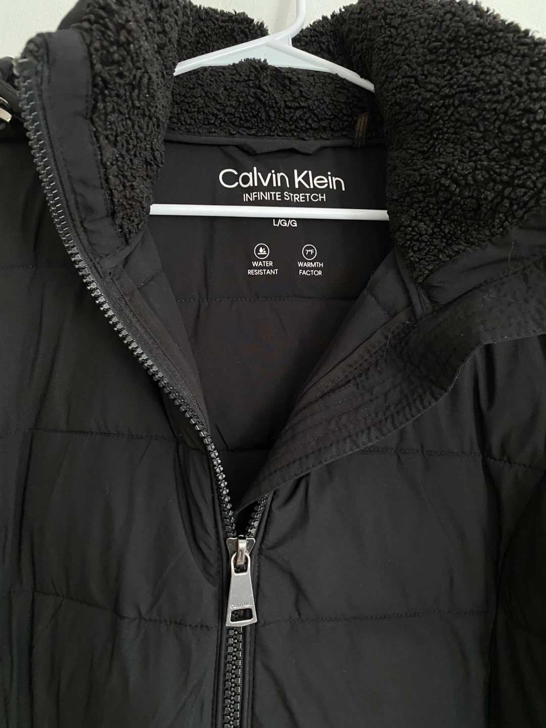 65Selling a Calvin Klein Infinite Stretch puffer coat in black. It's a size L/G (Large/Grande). This coat is water resistant and designed with warmth in mind. Perfect for staying cozy this winter!
