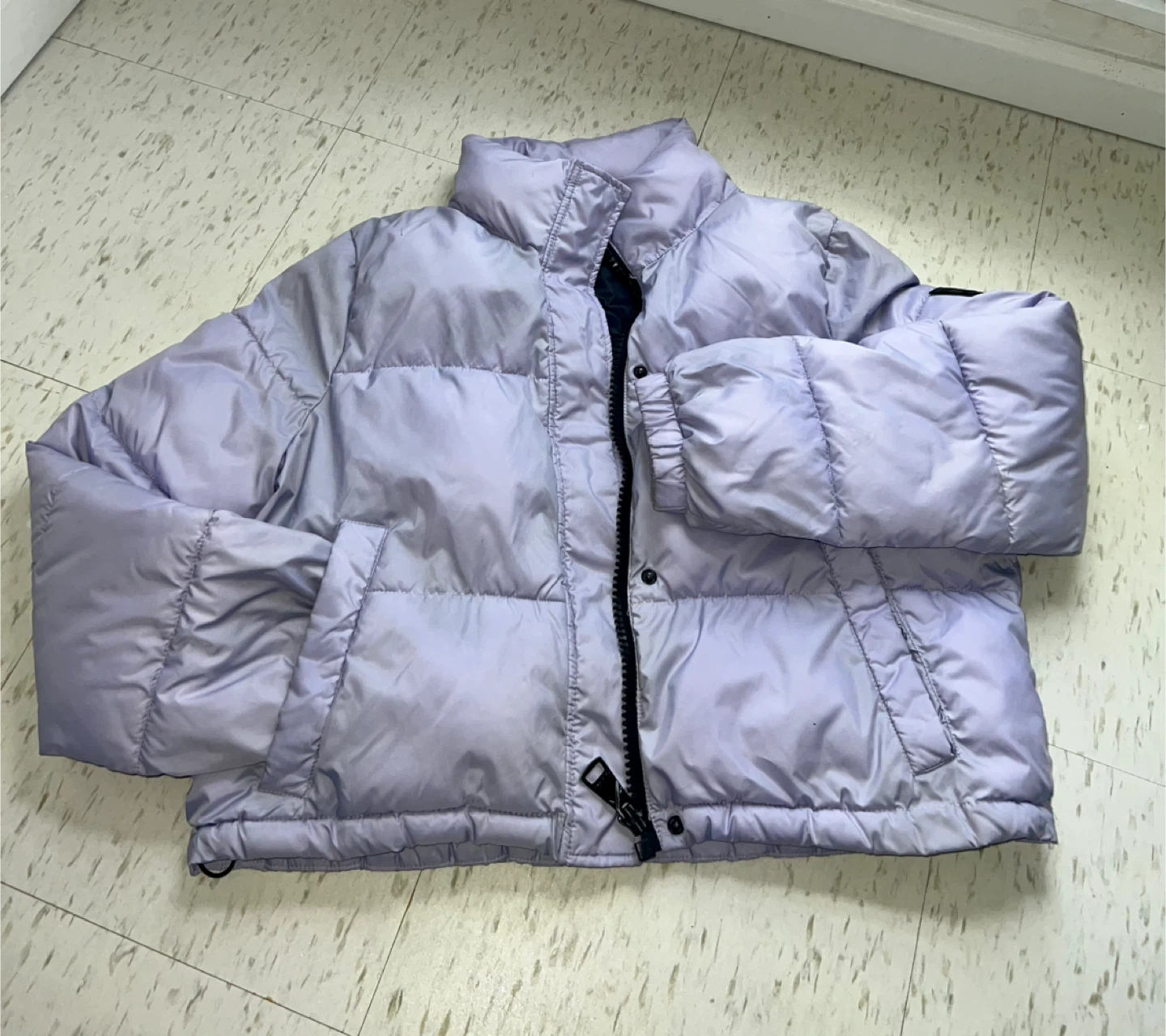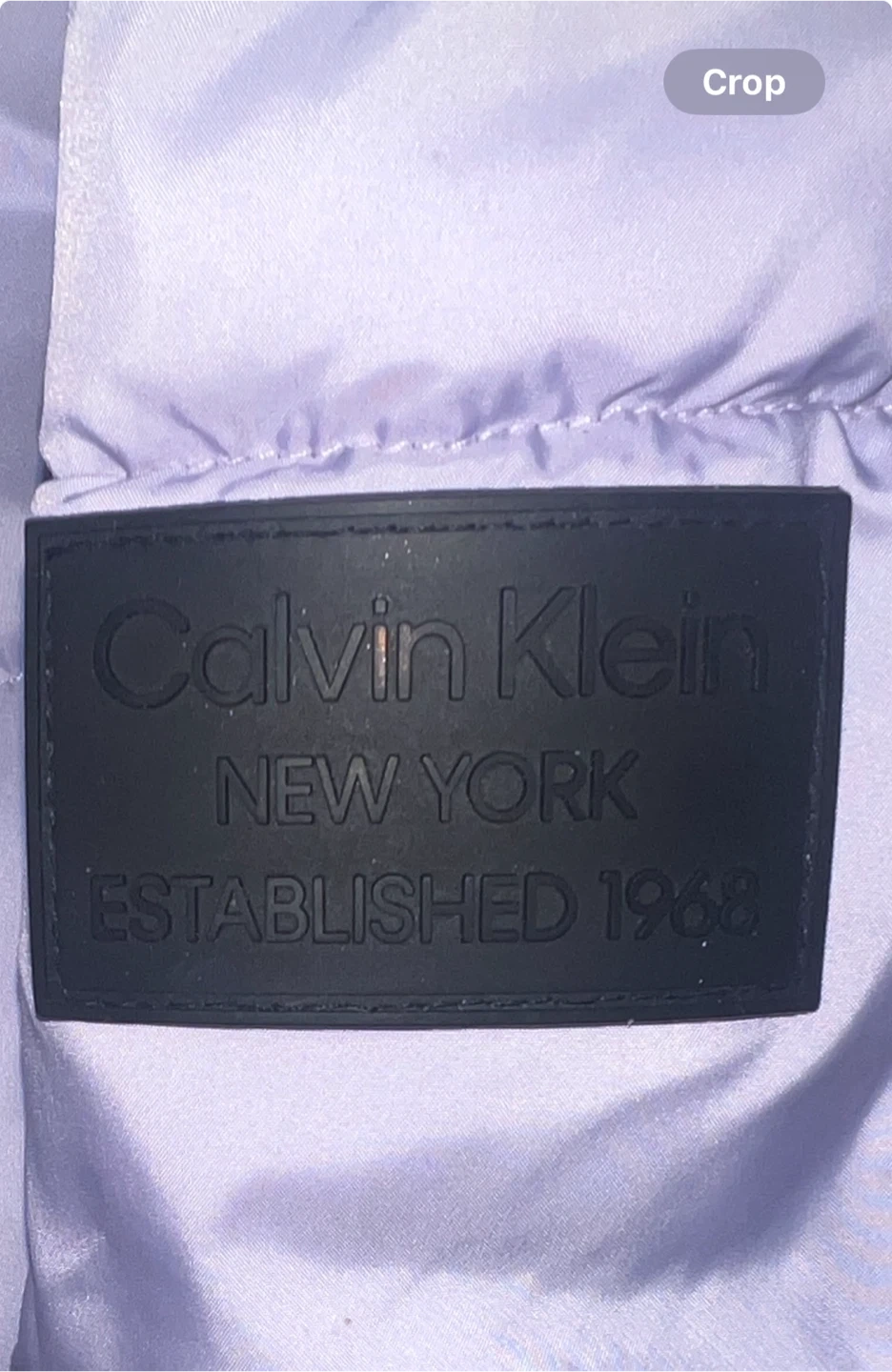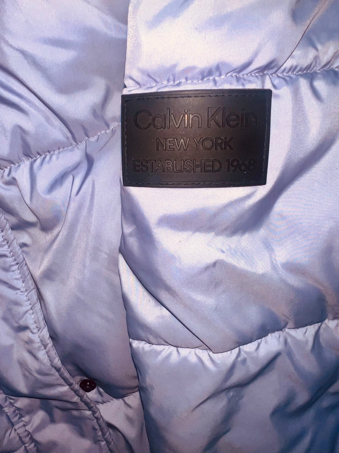 Selling a Calvin Klein puffer jacket in a light purple color. It's in great condition and perfect for staying warm and stylish!