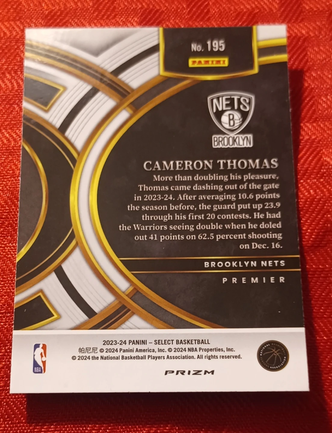 73Selling a Cameron Thomas 2023-24 Panini Select Basketball card. It's an elegant print Ssp. It's in great condition!