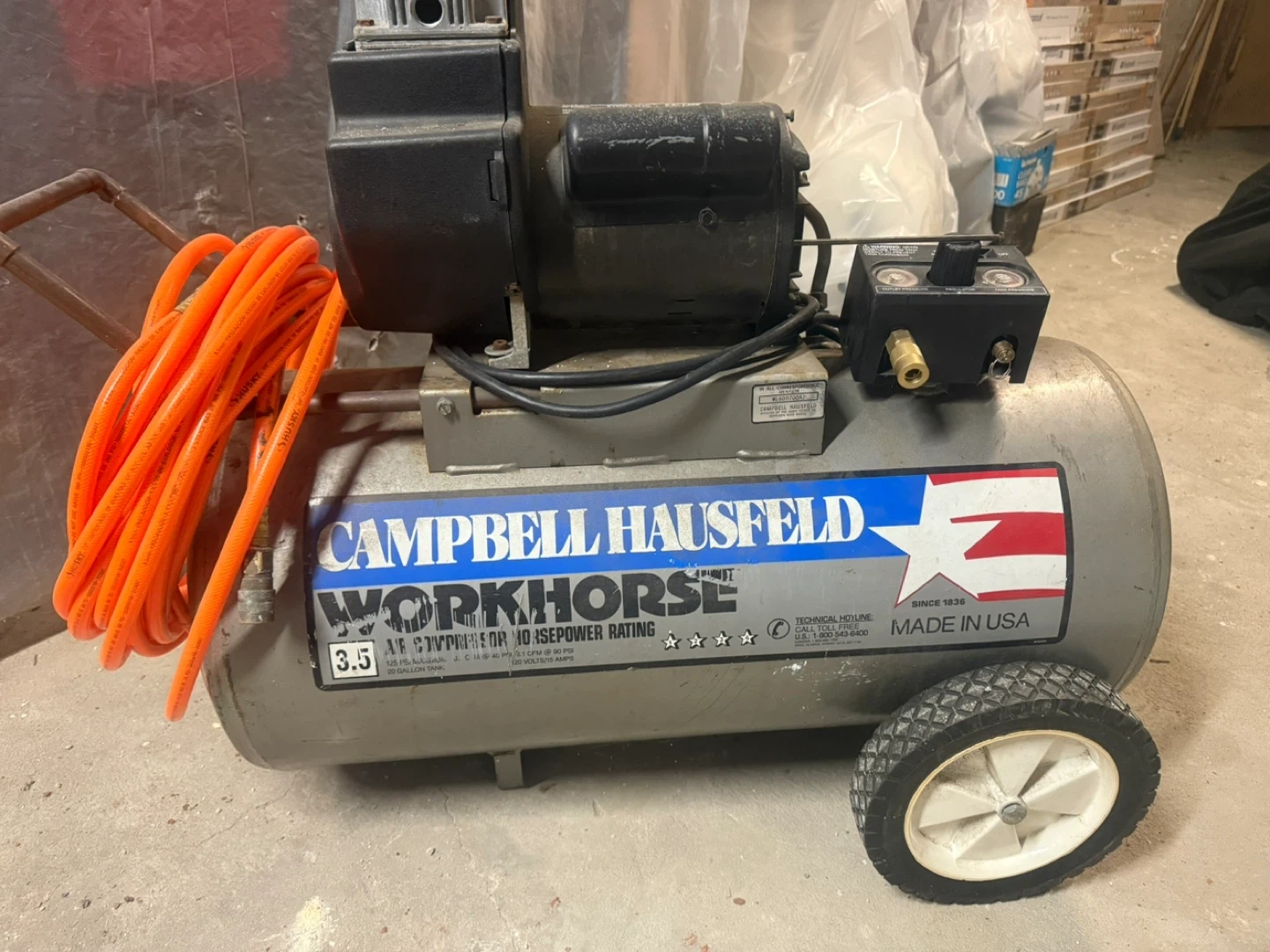10Selling a Campbell Hausfeld Workhorse air compressor. It's a 3.5 HP model with a 20-gallon tank.
