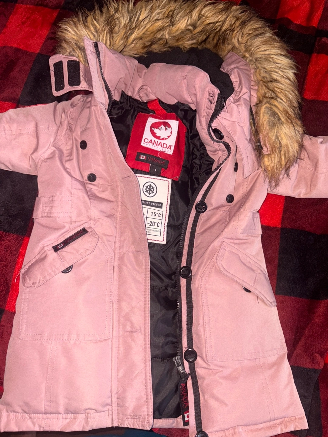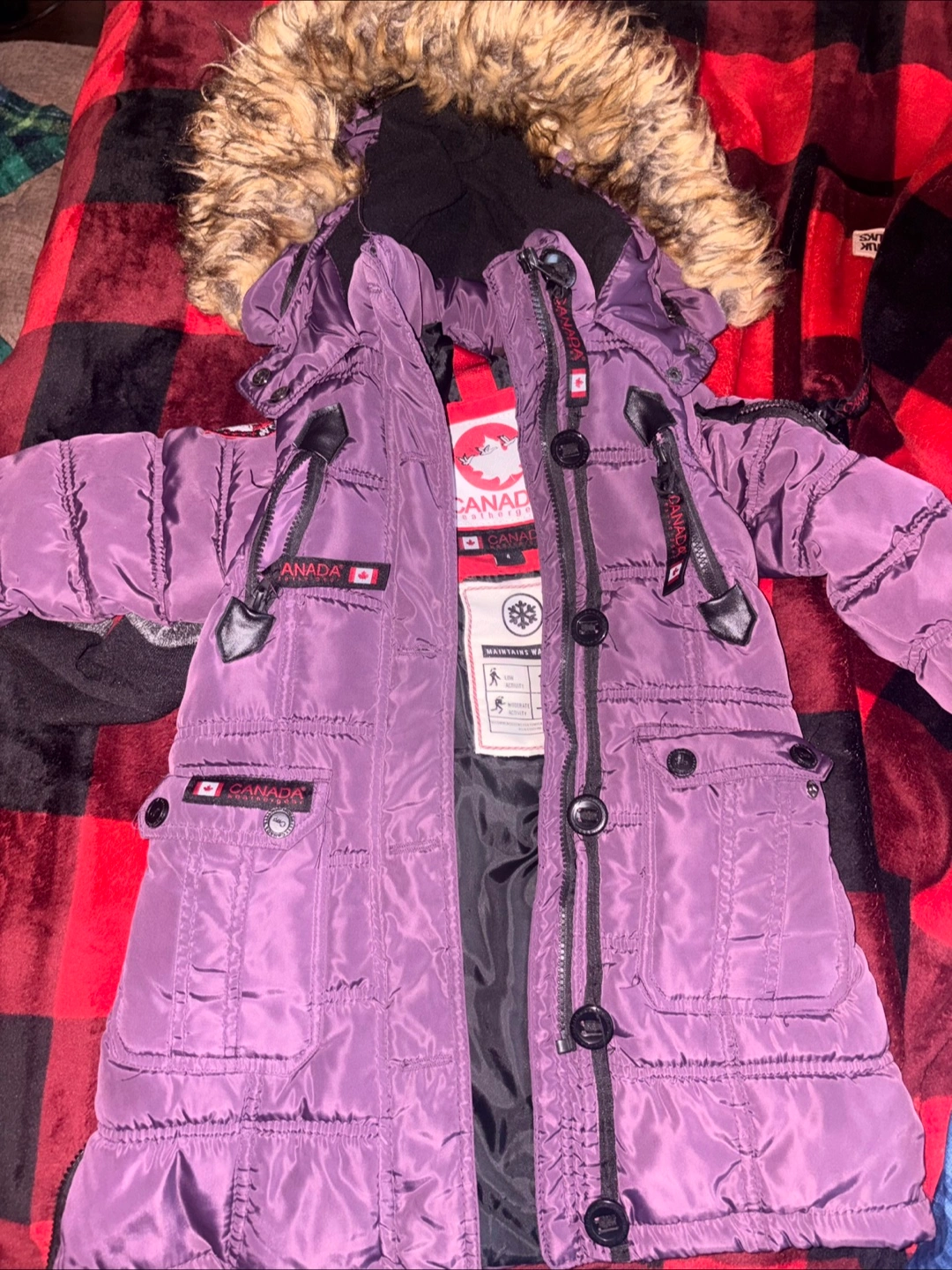 Keep your little one warm this winter with a Canada Weather Gear kids' winter coat! It features a faux fur-trimmed hood and a durable design to withstand cold weather. Available in purple and pink both size 4 toddler girl $40 each or both for $70 good condition
