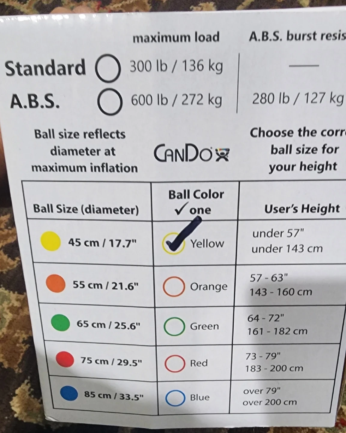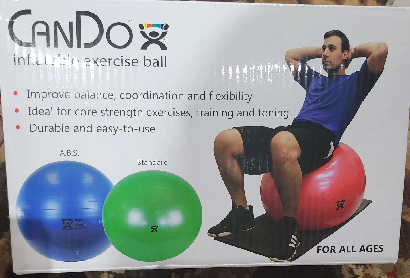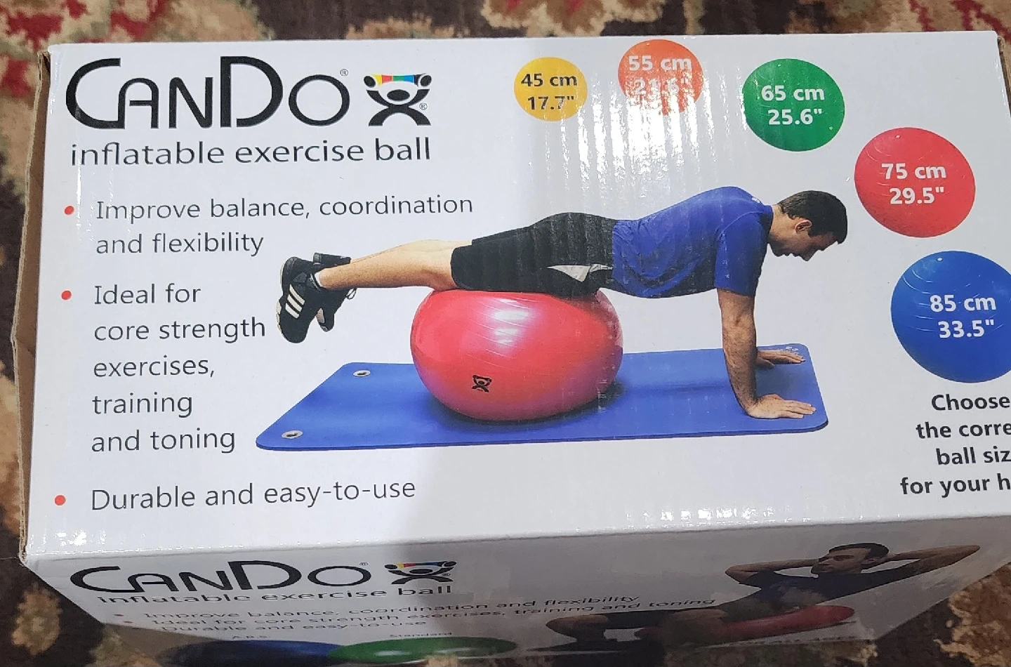 22Get ready to improve your balance, coordination, and flexibility with this CanDo inflatable exercise ball! It's ideal for core strength exercises, training, and toning. The ball is yellow and measures 45 cm / 17.7" in diameter. It's durable and easy to use, perfect for all ages!
