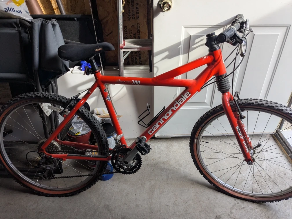 Selling a red Cannondale 700 mountain bike. It's a size large and has a Headshok P-Bone front suspension. Great for hitting the trails!