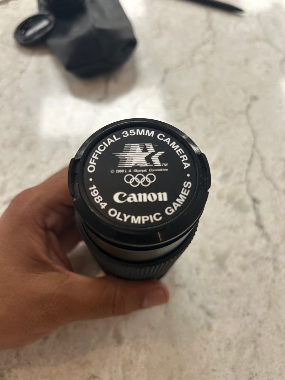 65Selling a Canon 35mm camera lens. It also has a SAKAR 52mm lens attached. This lens is an official 1984 Olympic Games camera.