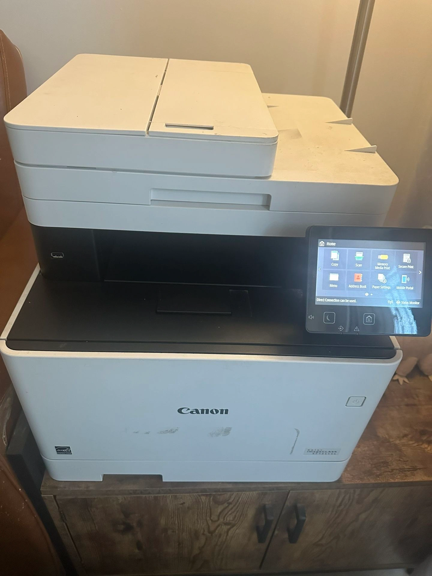 Selling a fully functional Canon imageCLASS MF731Cdw color laser printer. Prints, scans, and copies. Includes all four toner cartridges (black, cyan, magenta, yellow) but unsure about remaining levels. Perfect for home office or small business use. Local pickup only, it’s small but heavy!