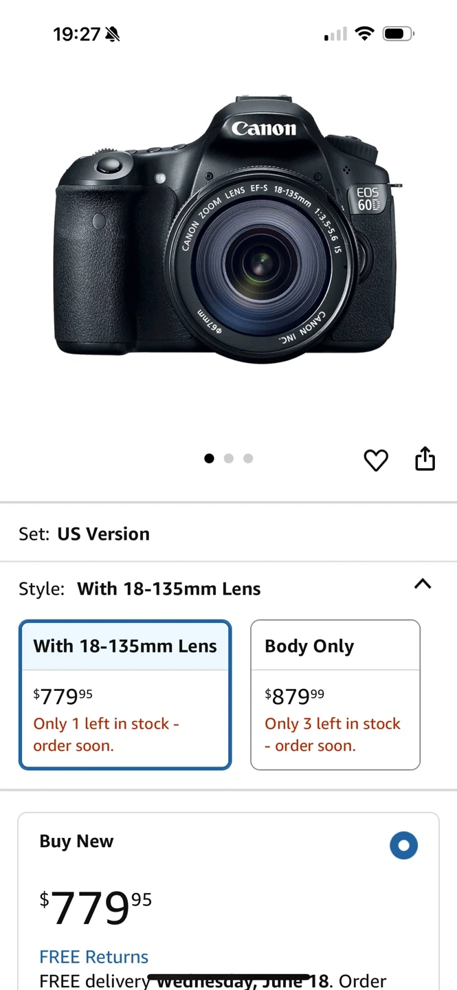 Selling a Canon EOS 60D DSLR camera with an 18-135mm lens. Also included is a camera bag and an additional lens! Great condition and ready for a new home.
