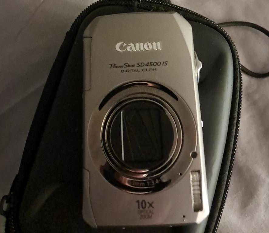 65Selling a Canon PowerShot SD4500 IS digital camera. It comes with a carrying case for protection and easy transport. The camera features a 10x optical zoom lens. Great for capturing memories on the go!