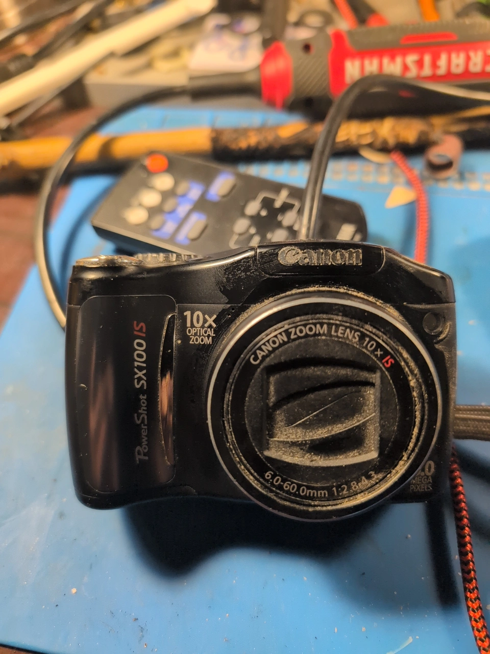 Selling a Canon PowerShot SX100 IS digital camera. It features a 10x optical zoom and 10 mega pixels. It shows some signs of use.